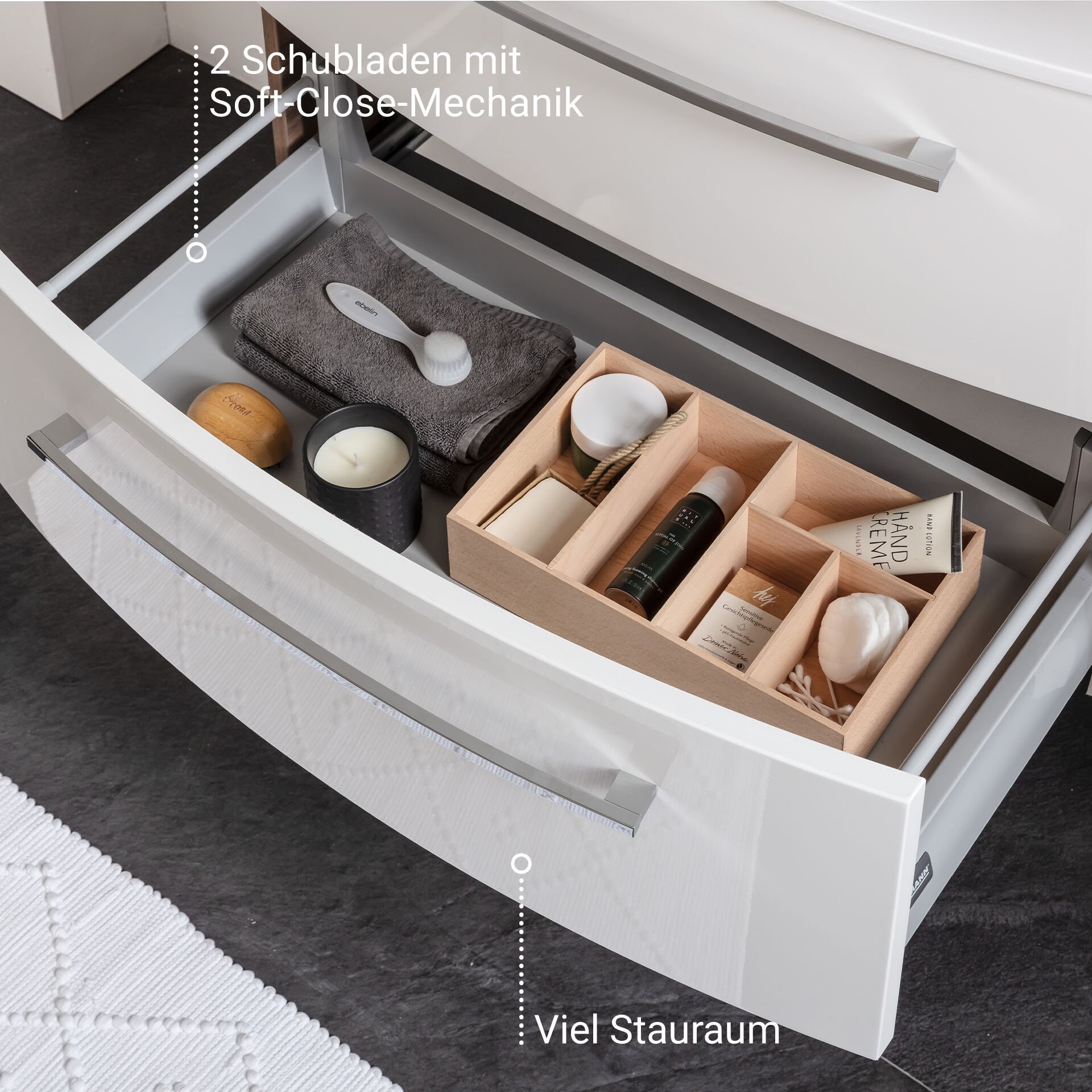- Ausstattung: 2 Schubladen mit Soft-Close-System, 2 Griffe verchromt
