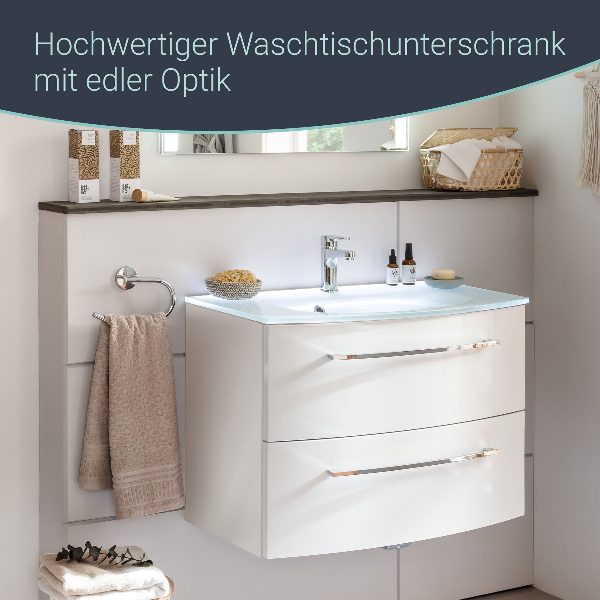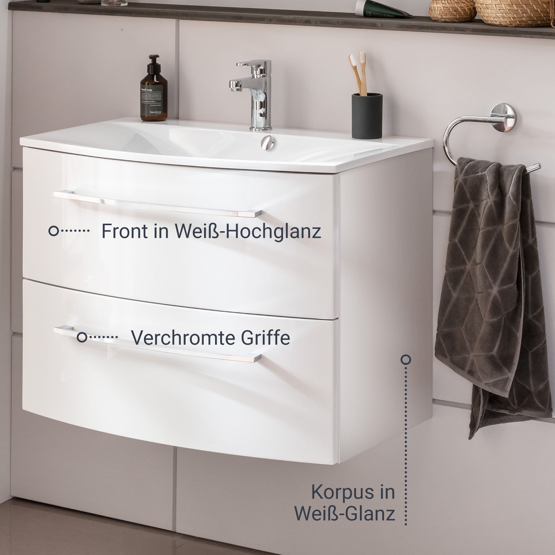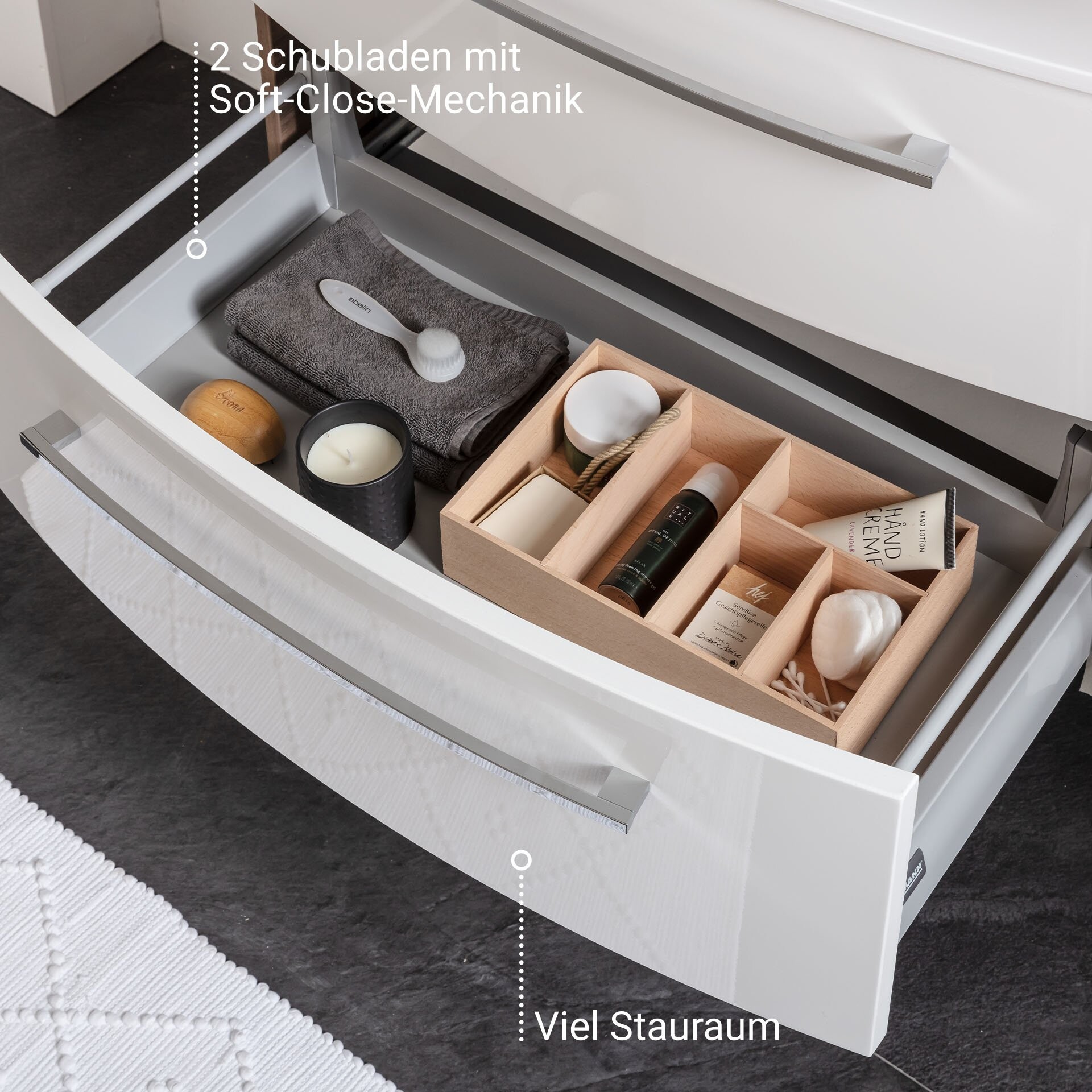 - Ausstattung: 2 Schubladen mit Soft-Close-System, 2 Griffe verchromt