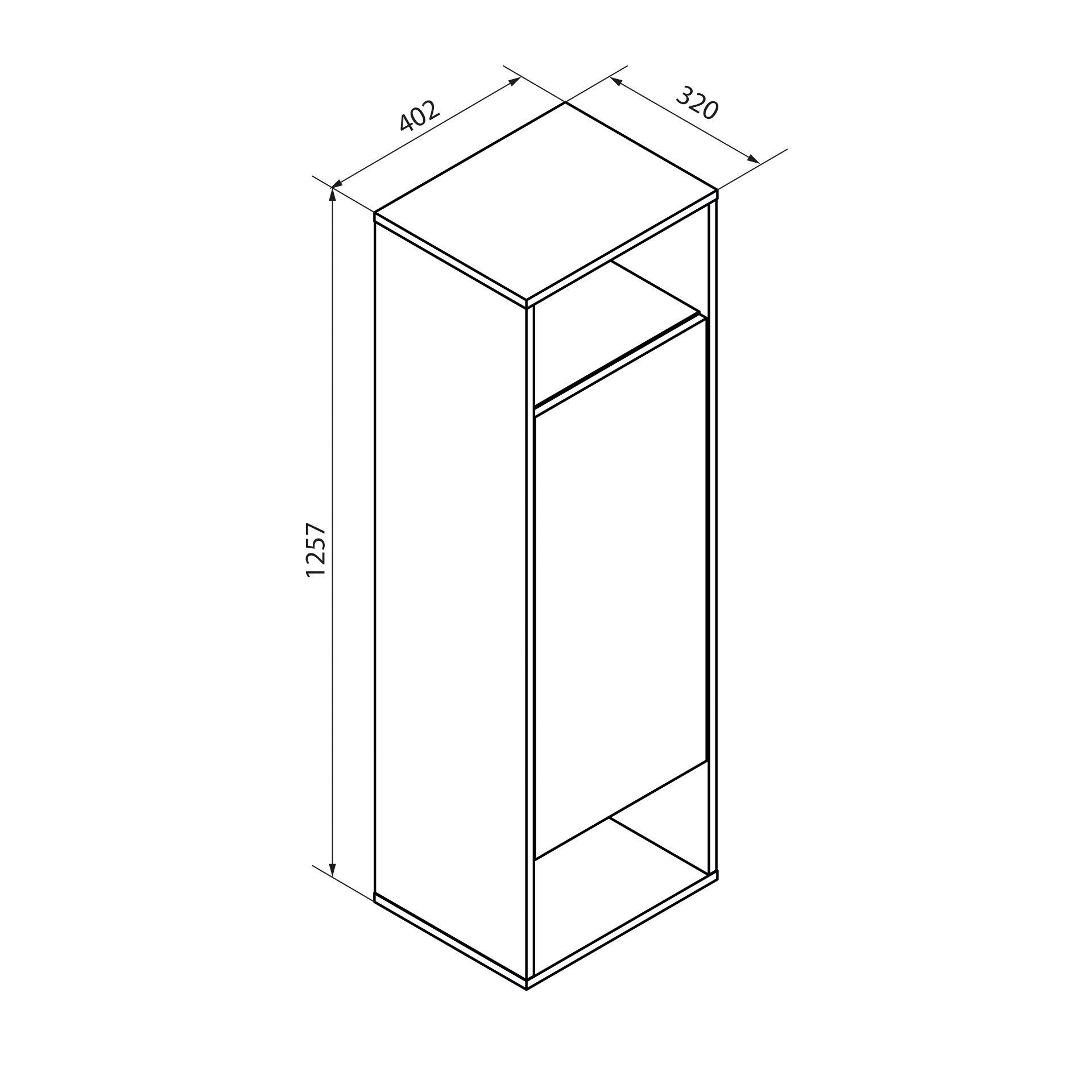 - Maße: 40,2 cm Breite, 125,7 cm Höhe und 32 cm Tiefe