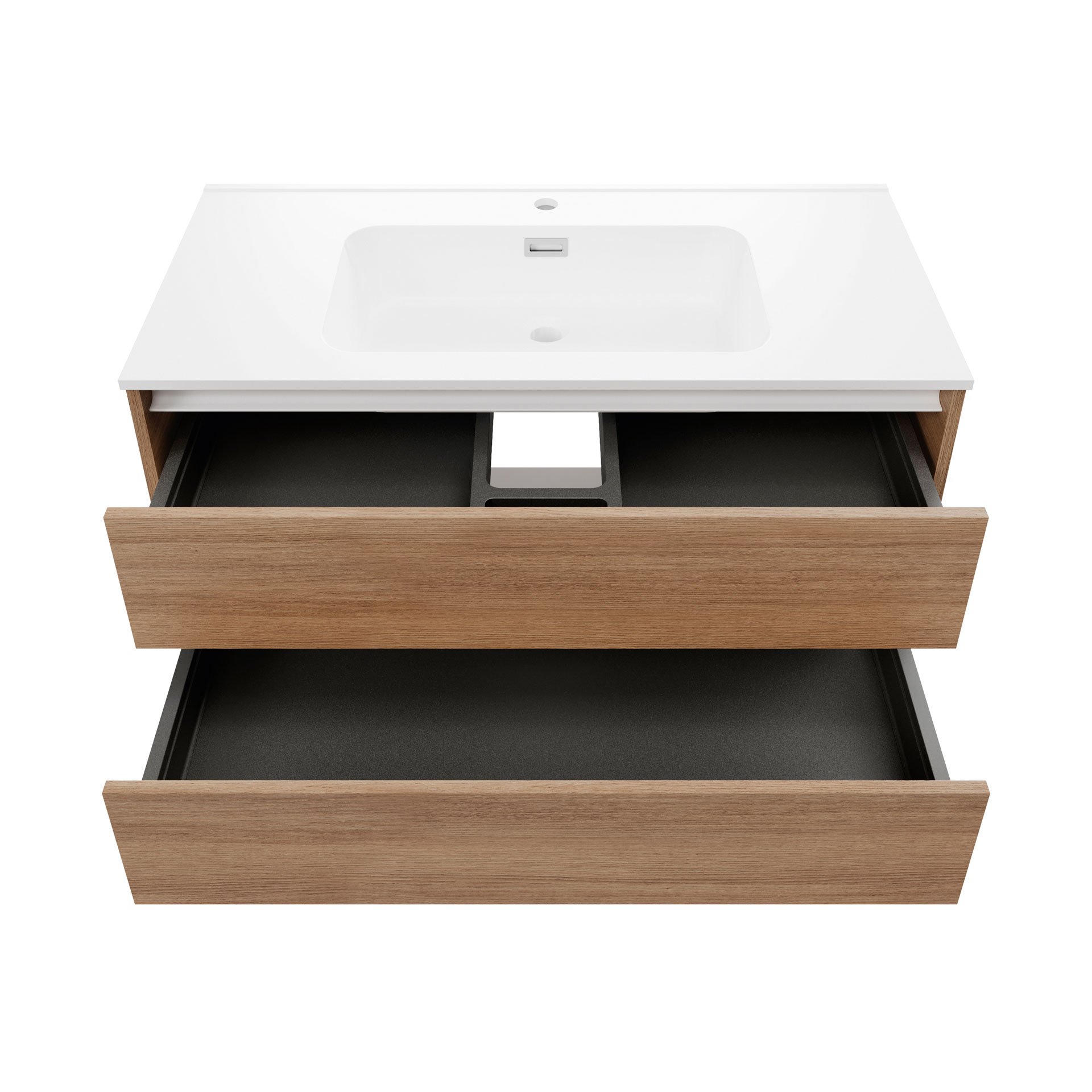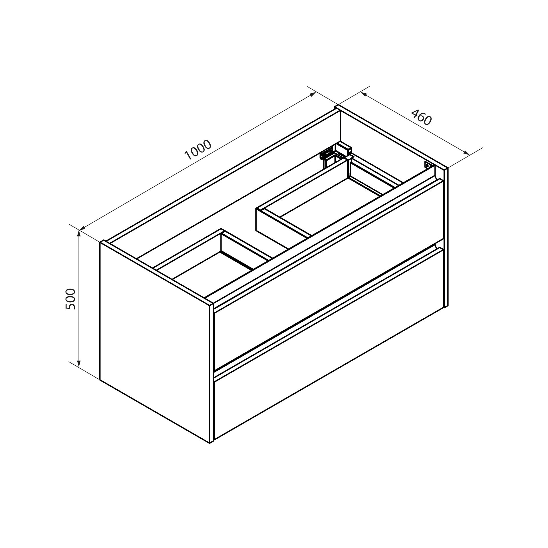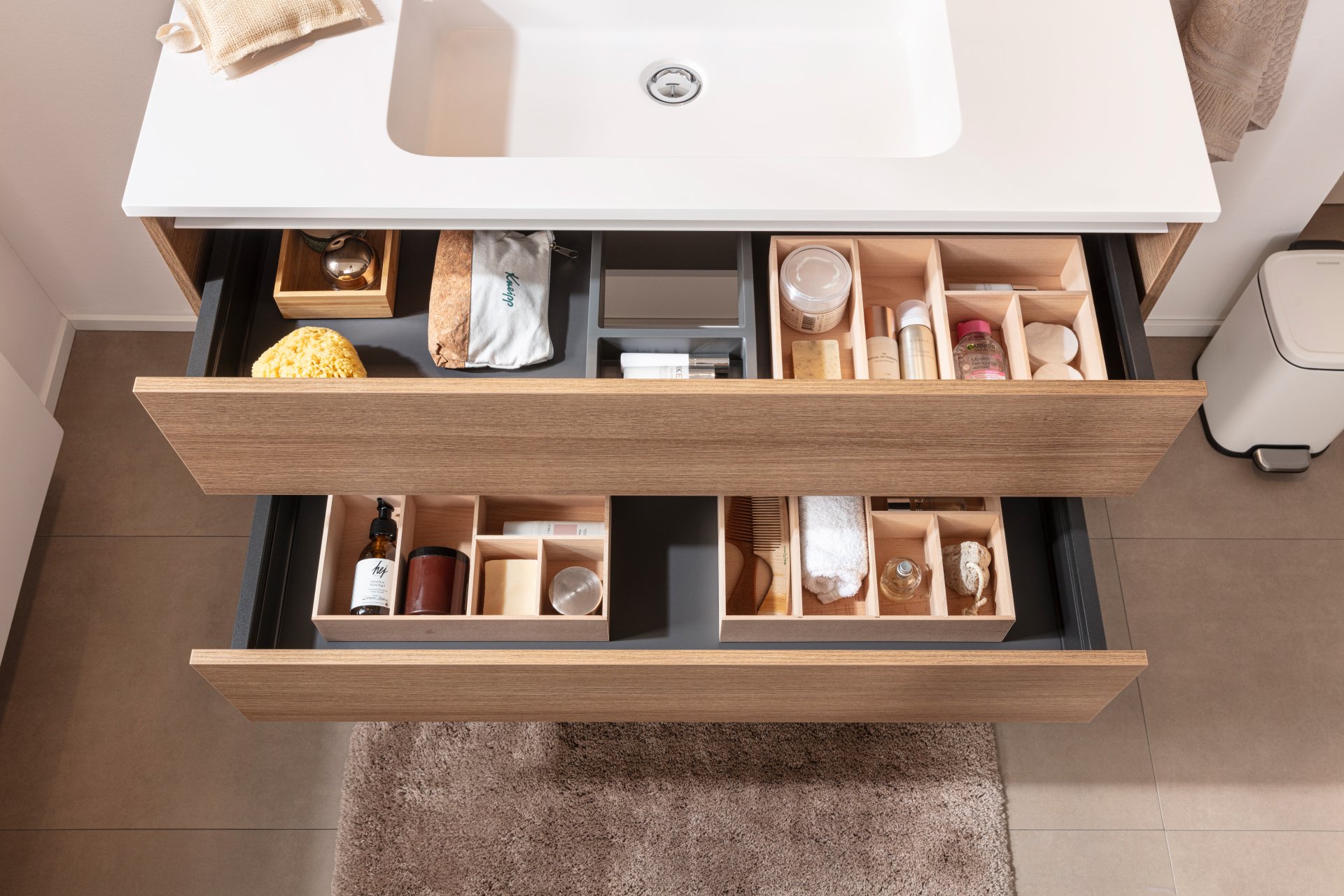- Ausstattung: 2 Schubladen mit Soft-Close System, weiße Griffleisten