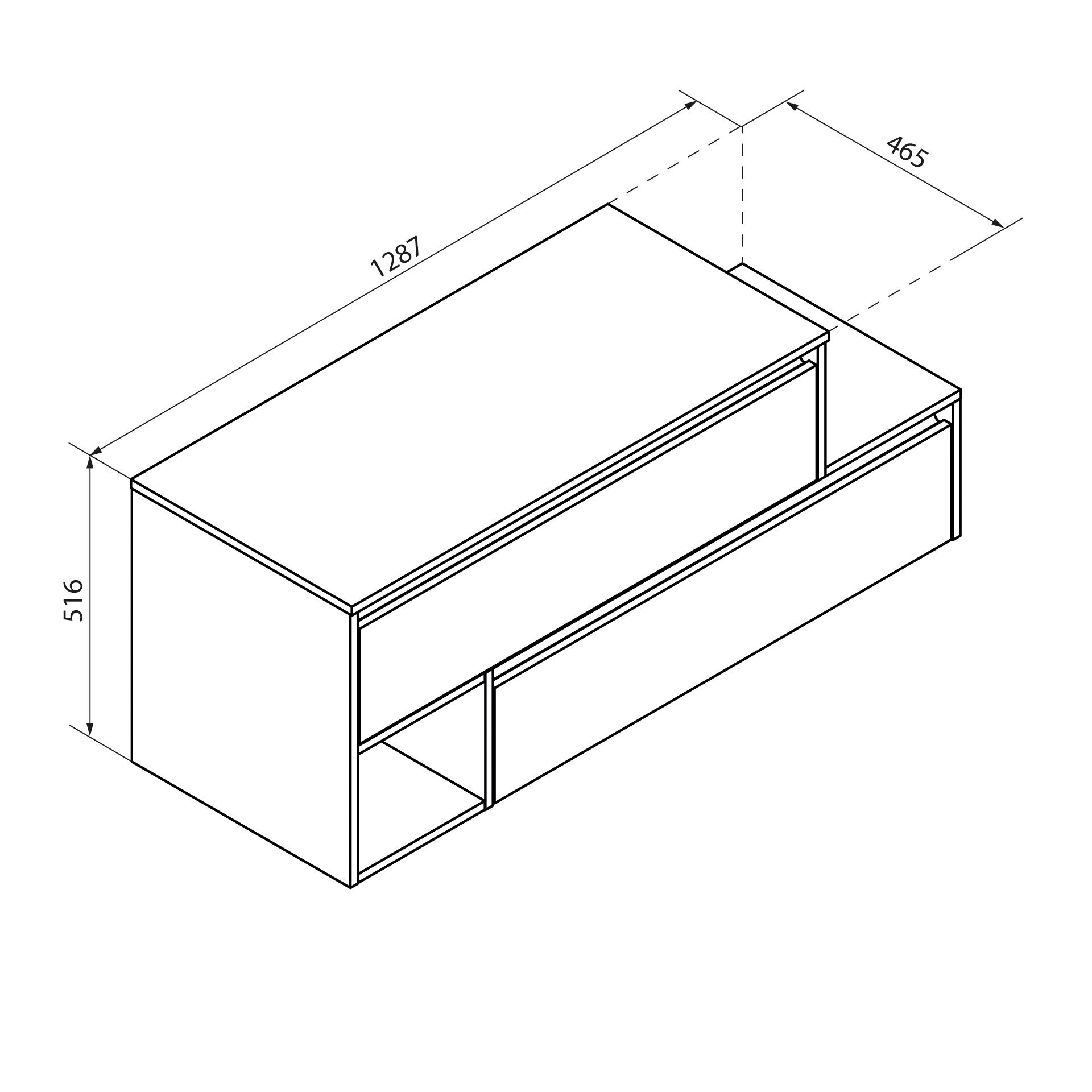 - Maße: 128,7 cm Breite, 51,6 cm Höhe und 46,5 cm Tiefe