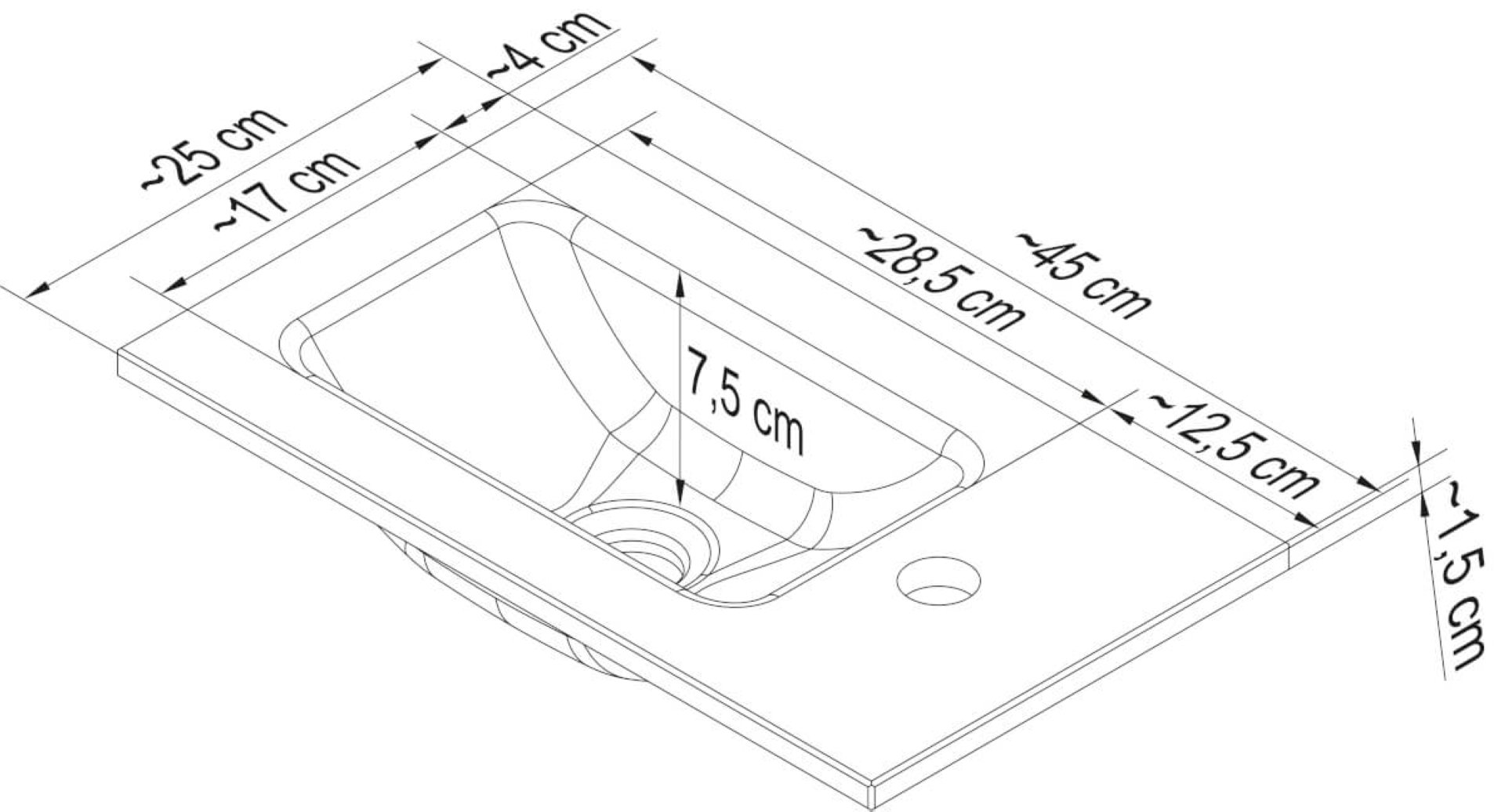 - Stärke: 1,5 cm, ohne Überlauf, mit Permanentablauf