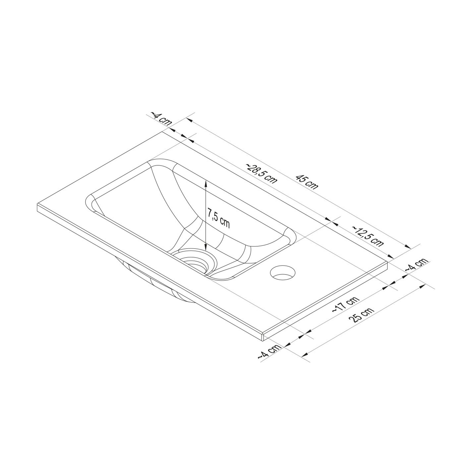 - Maße: 45 cm Breite, 10 cm Höhe und 25 cm Tiefe