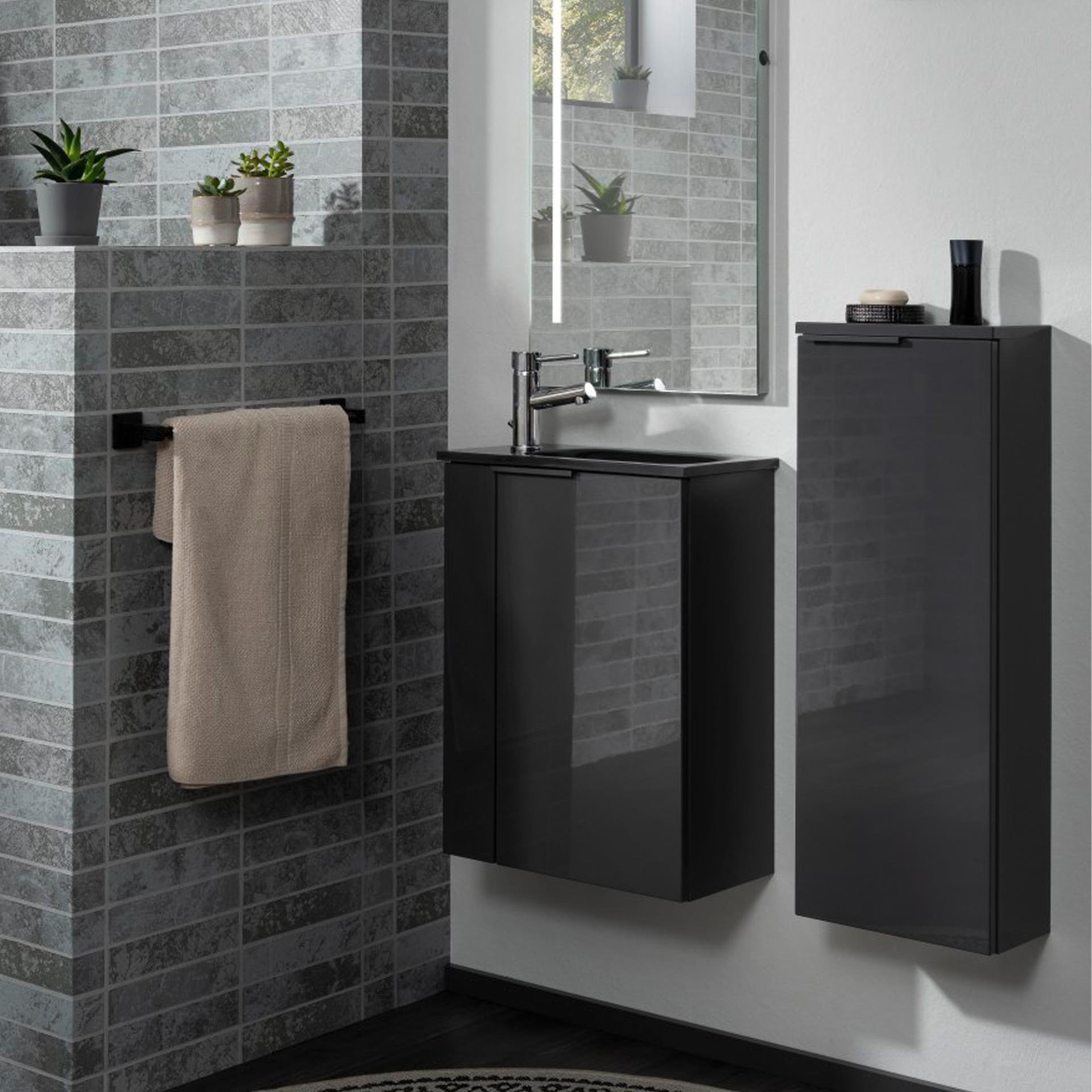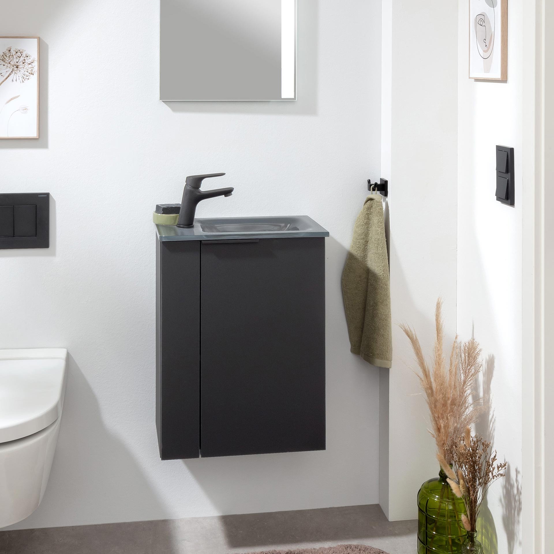 Das Glaswaschbecken der Extraklasse! Hol Dir die Trendfarbe in Dein Gästebad. Anthrazit, oft als tiefes, dunkles Grau beschrieben, neigt dazu, in der Nähe von Schwarz zu liegen. Das Waschbecken schafft durch die dunkle Optik eine moderne und trendige Atmosphäre in Deinem Bad. Der Fackelmann Waschtisch aus Glas ist aufgrund seines modernen Designs ein Blickfang für jedes Gäste WC. Seine Maße sind die Grundlage für optimal gestaltete Gäste WC Lösungen und die Basis für moderne kleine Bäder. Durch seine durchdachte Gestaltung kann man bei diesem Fackelmann Waschbecken 45 cm Glas, Anthrazit die Armatur sowohl rechts als auch links anbringen. Ein individuelles Extra ist das Backlight (Art.Nr. 86301). Ein langlebiges, leicht zu installierendes LED-Band, mit dem Du das Becken indirekt beleuchten kannst. Es ist nicht im Lieferumfang enthalten. Passend zum Waschtisch: Waschtischunterschrank Mini von Fackelmann aus der Serie LUNA in Anthrazit (Art. Nr. 86011 oder 86021) oder andere Gäste WC Waschtischunterschränke von Fackelmann.