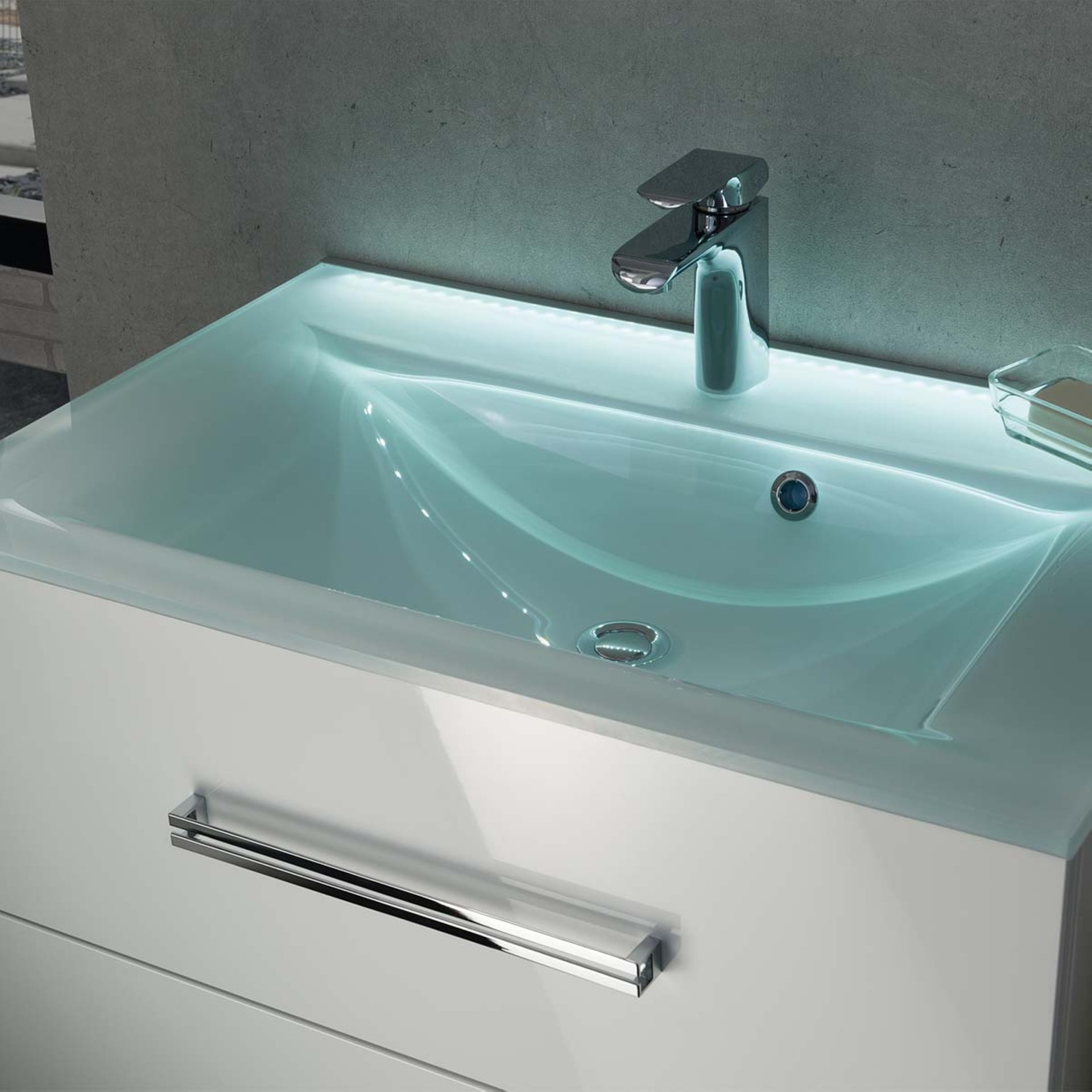 Es gehört zu den edelsten Materialien, die man für Waschbecken verwenden kann: Glas. Das mintfarbene Waschbecken aus Glas von Fackelmann besticht durch seine Form und Exklusivität. Durch seine breite, tiefe Waschmulde bleiben Wasserspritzer da, wo sie hingehören. Das Waschbecken aus Glas passt auf verschiedene Unterschränke von Fackelmann mit einer Breite von 80 cm. Ein zusätzliches Highlight: Waschbecken aus Glas kannst Du mit einer Waschbeckenbeleuchtung (Art.Nr. 86300) einzigartig illuminieren. Mit einem Fackelmann Waschbecken 80 cm aus Glas in mintgrün schaffst Du Dir in Deinem Badezimmer einen Blickfang der Extraklasse.