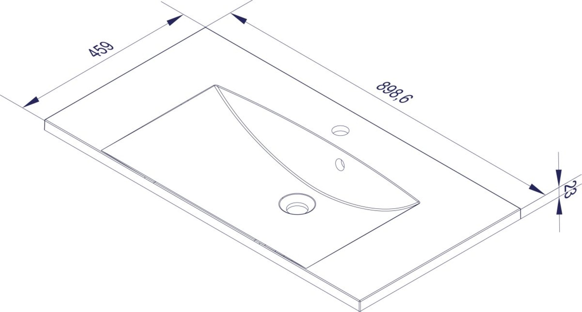 - Maße: 90 cm Breite, 14 cm Höhe und 46 cm Tiefe, Stärke Material 2,5 cm