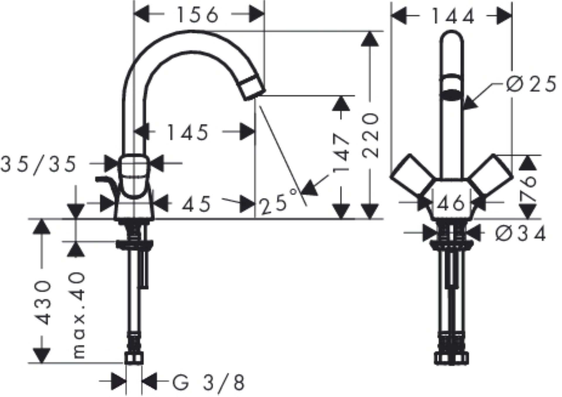 - Anschlussart: G 3/8 Anschlussschläuche