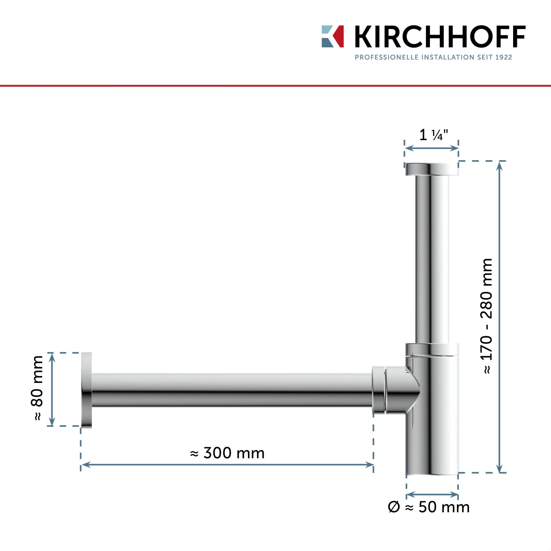 Kirchhoff Siphon Chrom, 1 1/4 " x 32 mm