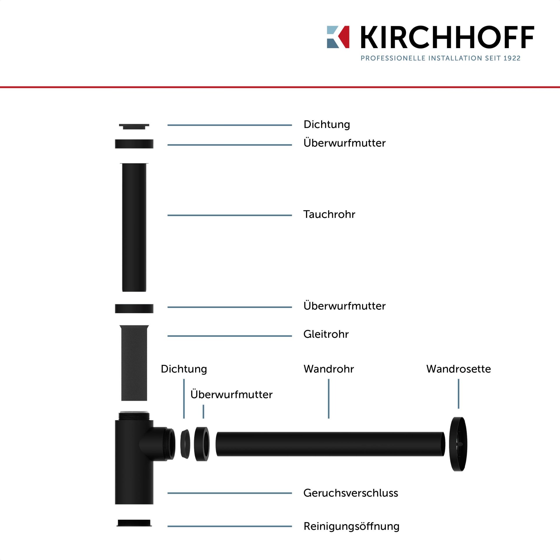 - Der massive Siphon wird als Komplettset inklusive Wandrosette geliefert und kann auch ohne handwerkliche Vorkenntnisse montiert werden.