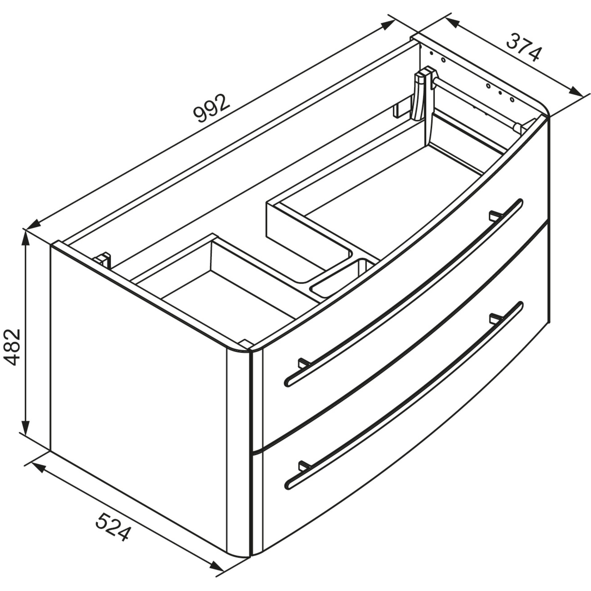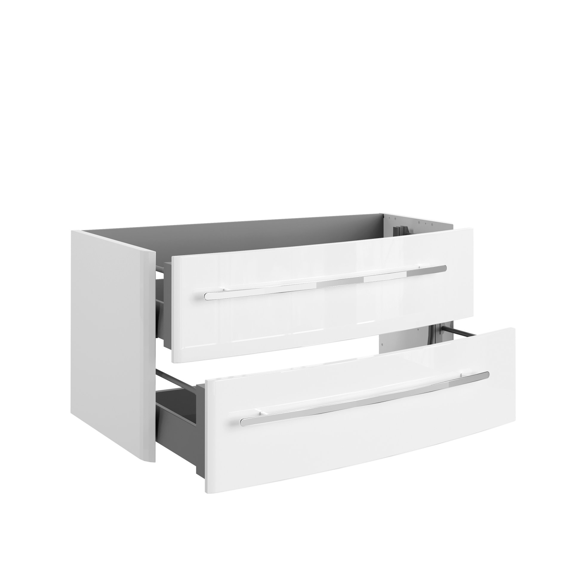 - Ausstattung: 2 Auszüge mit Einzugsdämpfer, 2 Griffe, Chrom glänzend