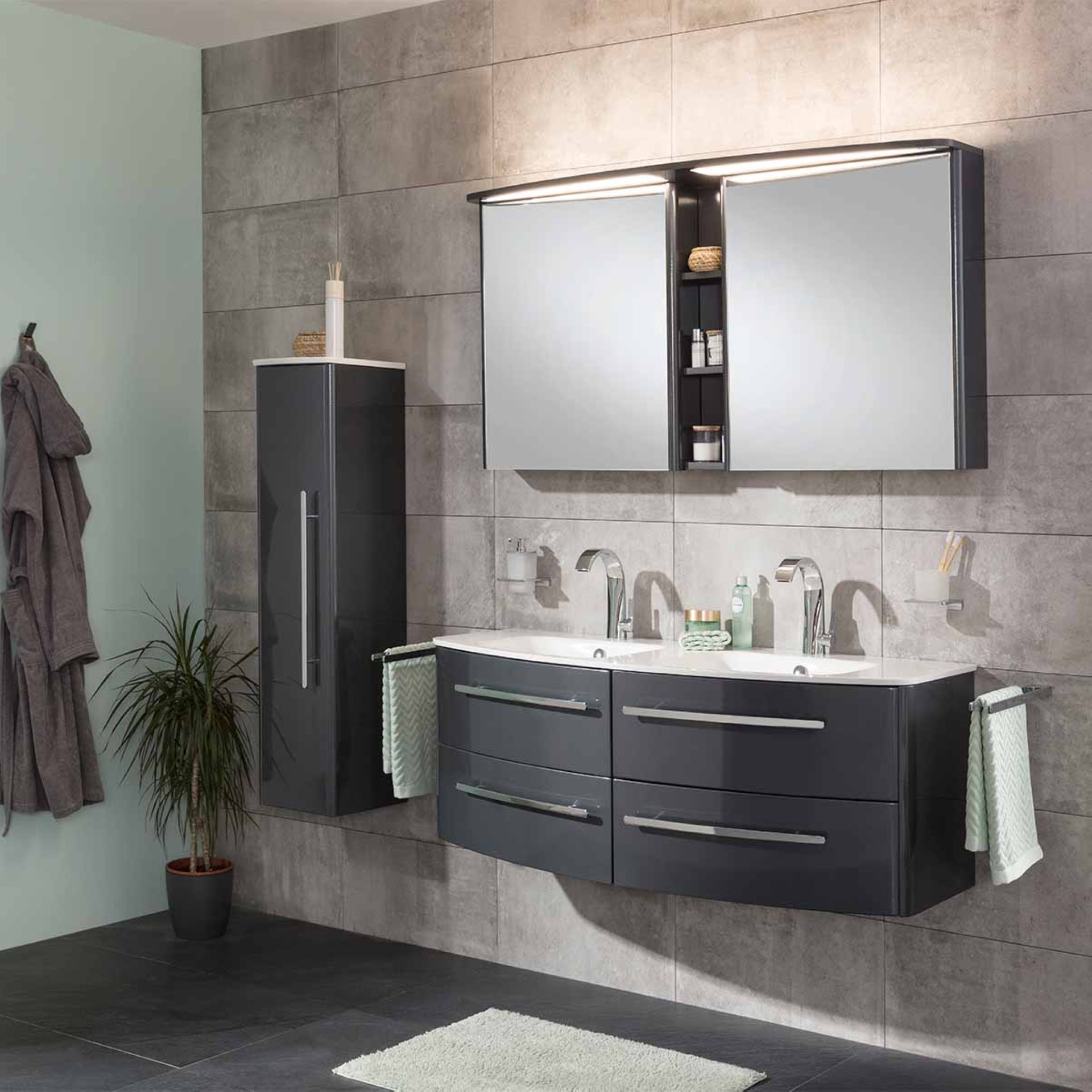 Lanzet CLASSICO Badmöbel Set 2-teilig Doppel-Waschtisch 140 cm breit, Anthrazit, Weiß
