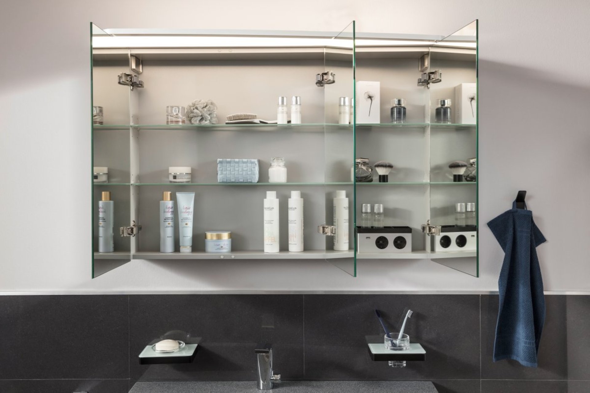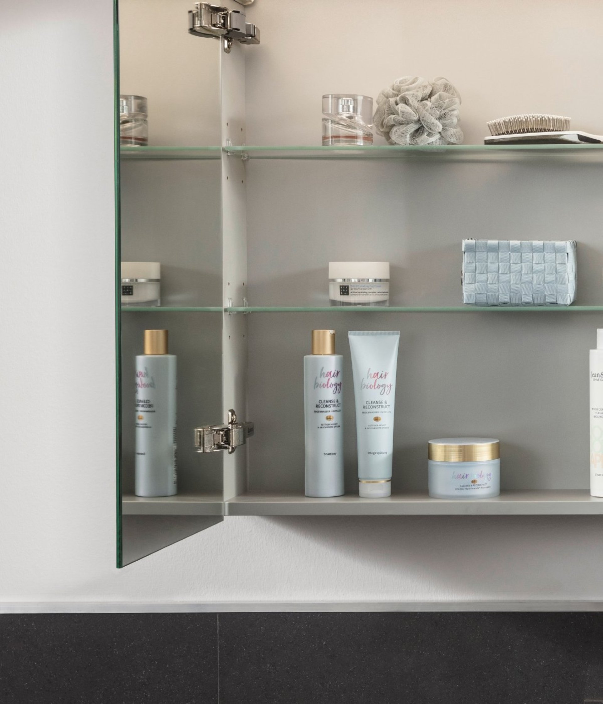 Du bist auf der Suche nach einem Spiegelschrank der Extraklasse? Dann hast Du mit dem 100 cm breiten CLASSICO Spiegelschrank mit weißem Korpus von Lanzet genau das Richtige gefunden. Drei grifflose Spiegeltüren lassen sich durch einen leichten Überstand im unteren Bereich bequem öffnen. Gedämpfte Scharniere sorgen für einen sanften Schließvorgang. Auf Grund der cleveren Aufteilung im Innenraum bekommen Deine Badaccessoires Struktur und sind immer griffbereit. Öffnest Du die innen verspiegelten Türen entsteht ein 3D-Effekt. So wird das Styling zu einem neuen, einzigartigen Erlebnis. Weiterhin überzeugt der Innenraum mit seiner modernen, fortschrittlichen Technik. An der Magic E-Box lassen sich elektrische Geräte problemlos anschließen und der USB Anschluss rundet die technischen Details ab. Mit dem geschwungenen LED-Leuchtpaneel erhältst Du ausreichend Licht auf die Spiegelfläche. Fast schon selbstverständlich scheint da das stufenlose Dimmen der Beleuchtung. Ein nahezu unsichtbarer Sensorschalter im unteren Teil des Korpus ermöglicht diese Funktion. Seit mehr als 150 Jahren produziert die Firma Lanzet Badmöbel in Deutschland. Das spricht für Kompetenz und Erfahrung auf hohem Niveau. Qualität Made in Germany - von engagierten und fachkundigen Mitarbeitern entwickelt und hergestellt.