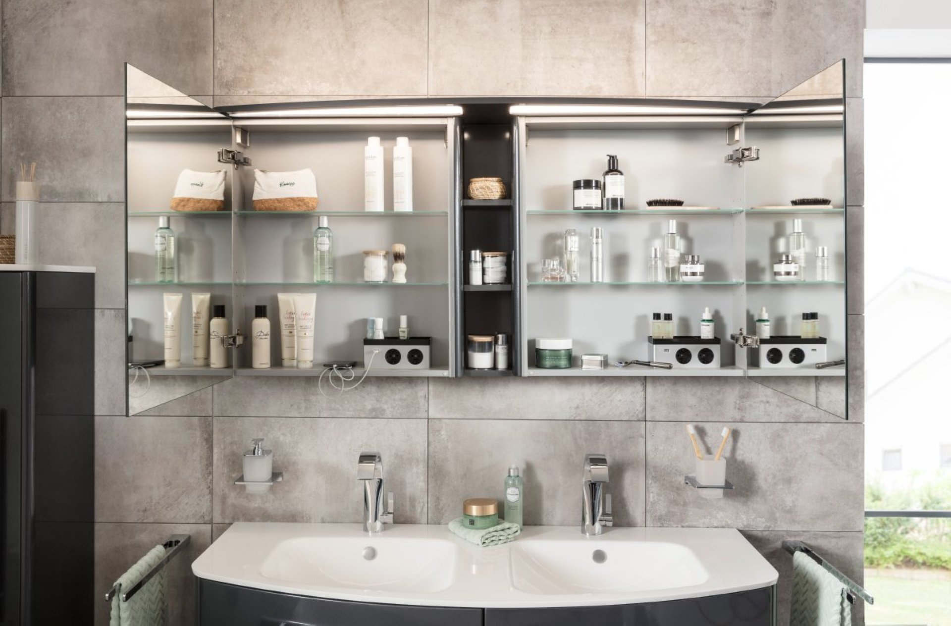 Du bist auf der Suche nach einem Spiegelschrank der Extraklasse? Dann hast Du mit dem 142 cm breiten CLASSICO Spiegelschrank im Design Dark Oak von Lanzet genau das Richtige gefunden. Sehr auffällig und damit ein Blickfang ist das Zwischenregal mit zwei Ablageböden. Hier dekorierst Du Dein Designobjekt ganz individuell. Zwei grifflose Spiegeltüren lassen sich durch einen leichten Überstand im unteren Bereich bequem öffnen. Gedämpfte Scharniere sorgen für einen sanften Schließvorgang. Auf Grund der cleveren Aufteilung im Innenraum bekommen Deine Badaccessoires Struktur und sind immer griffbereit. Öffnest Du die verspiegelten Innentüren entsteht ein 3D-Effekt. So wird das Styling zu einem neuen, einzigartigen Erlebnis. Weiterhin überzeugt der Innenraum mit seiner modernen, fortschrittlichen Technik. An der Magic E-Box lassen sich elektrische Geräte problemlos anschließen und der USB Anschluss rundet die technischen Details ab. Mit dem geschwungenen LED-Leuchtpaneel erhältst Du ausreichend Licht auf die Spiegelfläche. Fast schon selbstverständlich scheint da das stufenlose Dimmen der Beleuchtung. Ein nahezu unsichtbarer Touchpoint im unteren Teil des Korpus ermöglicht diese Funktion. Seit mehr als 150 Jahren produziert die Firma Lanzet Badmöbel in Deutschland. Das spricht für Kompetenz und Erfahrung auf hohem Niveau. Qualität Made in Germany - von engagierten und fachkundigen Mitarbeitern entwickelt und hergestellt.