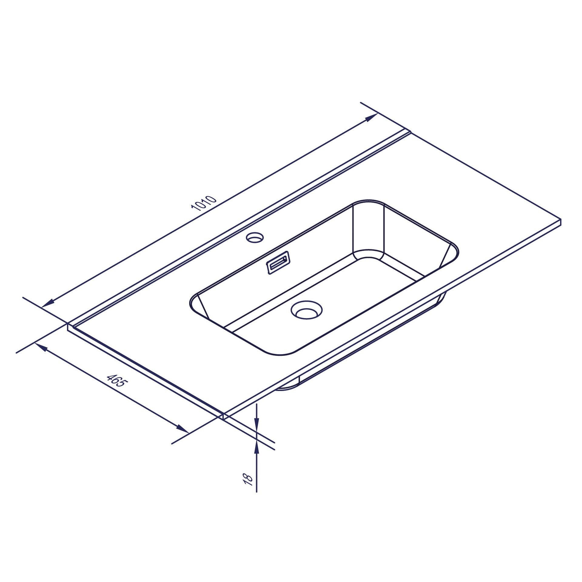 - Ausstattung: Hahnlochbohrung, integrierter rechteckiger Überlauf