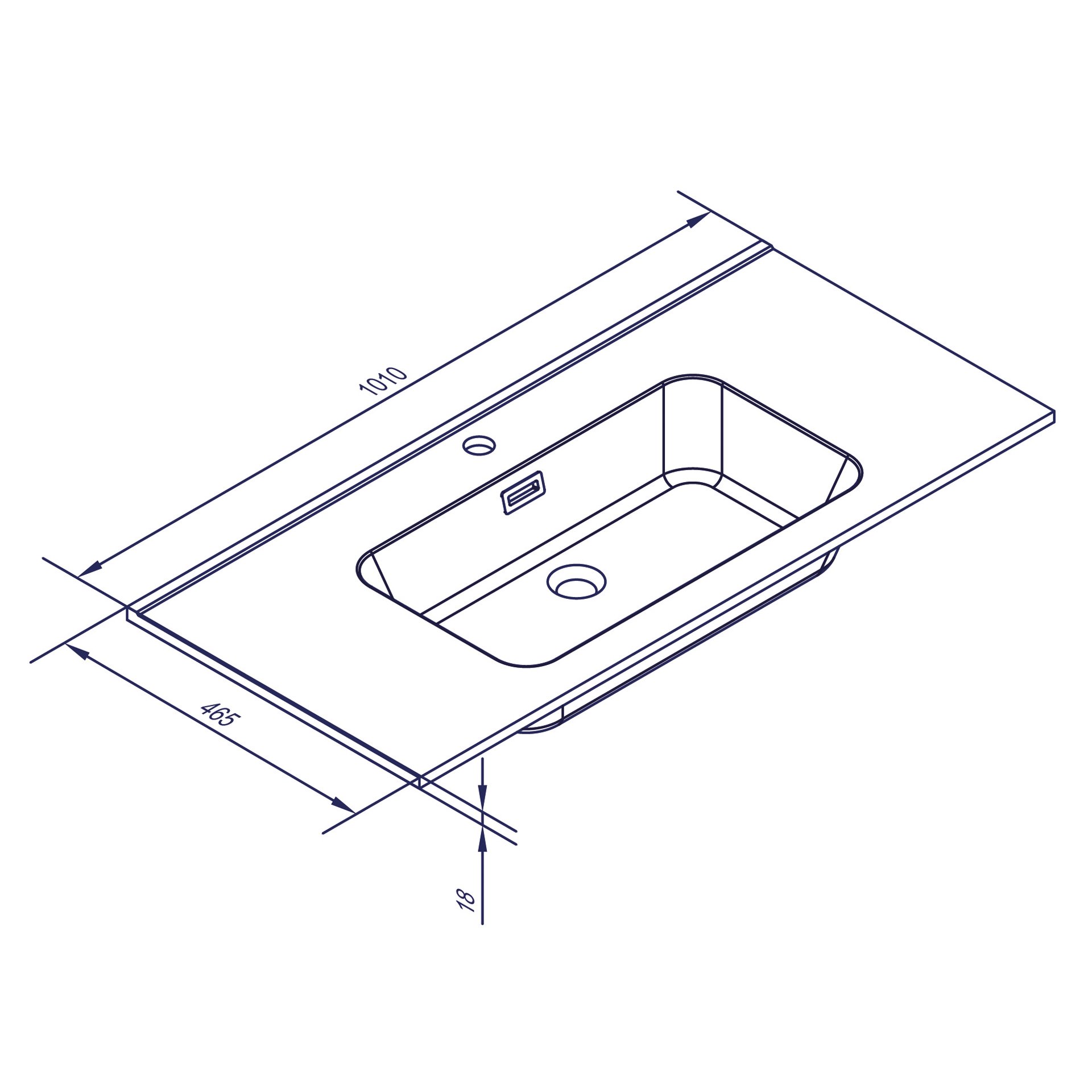 - Ausstattung: Hahnlochbohrung, integrierter, rechteckiger Überlauf