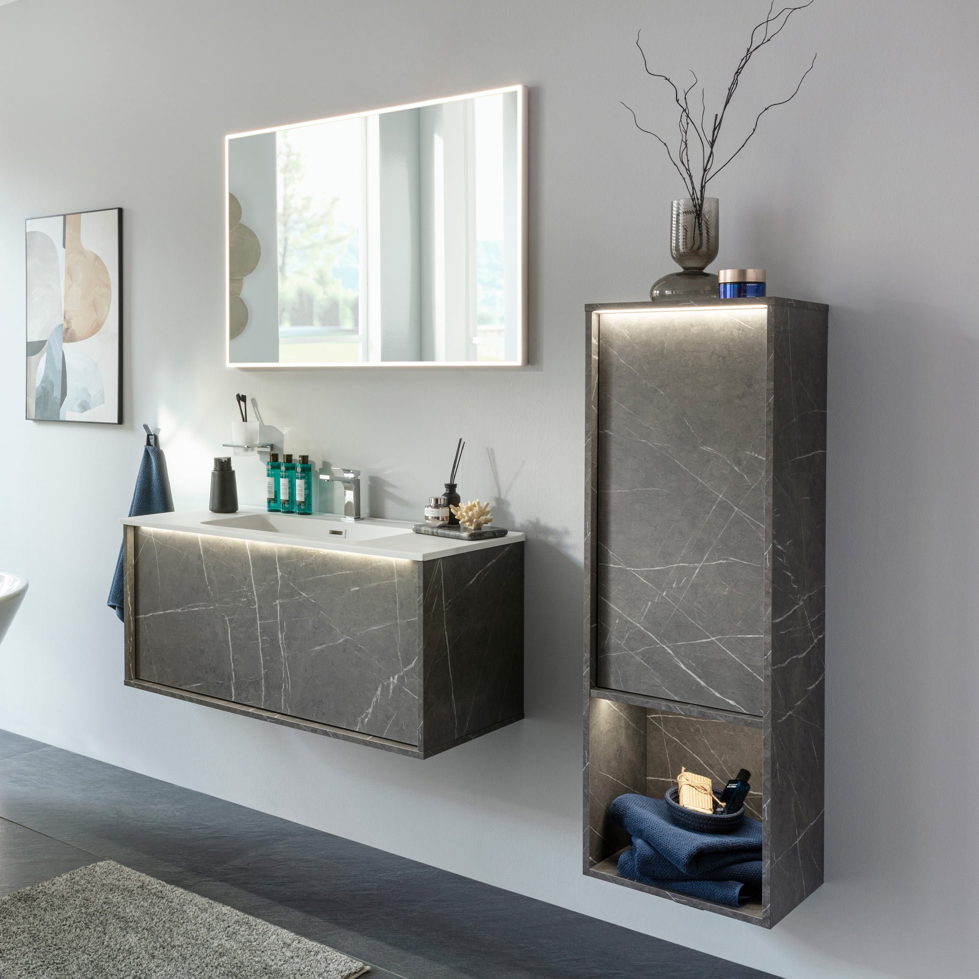 Lanzet DUNE Waschbecken Gussmarmor 101 cm breit, Weiß matt