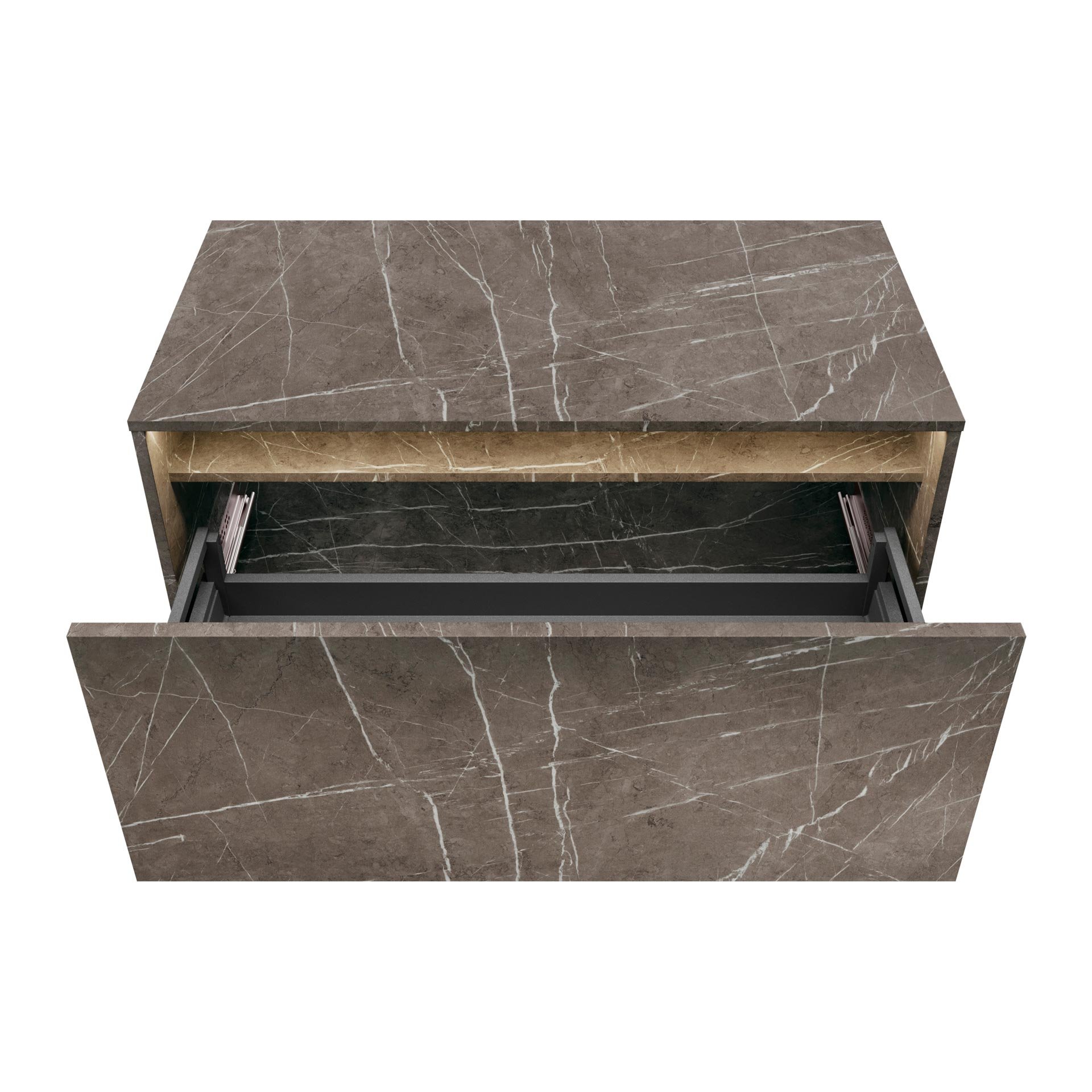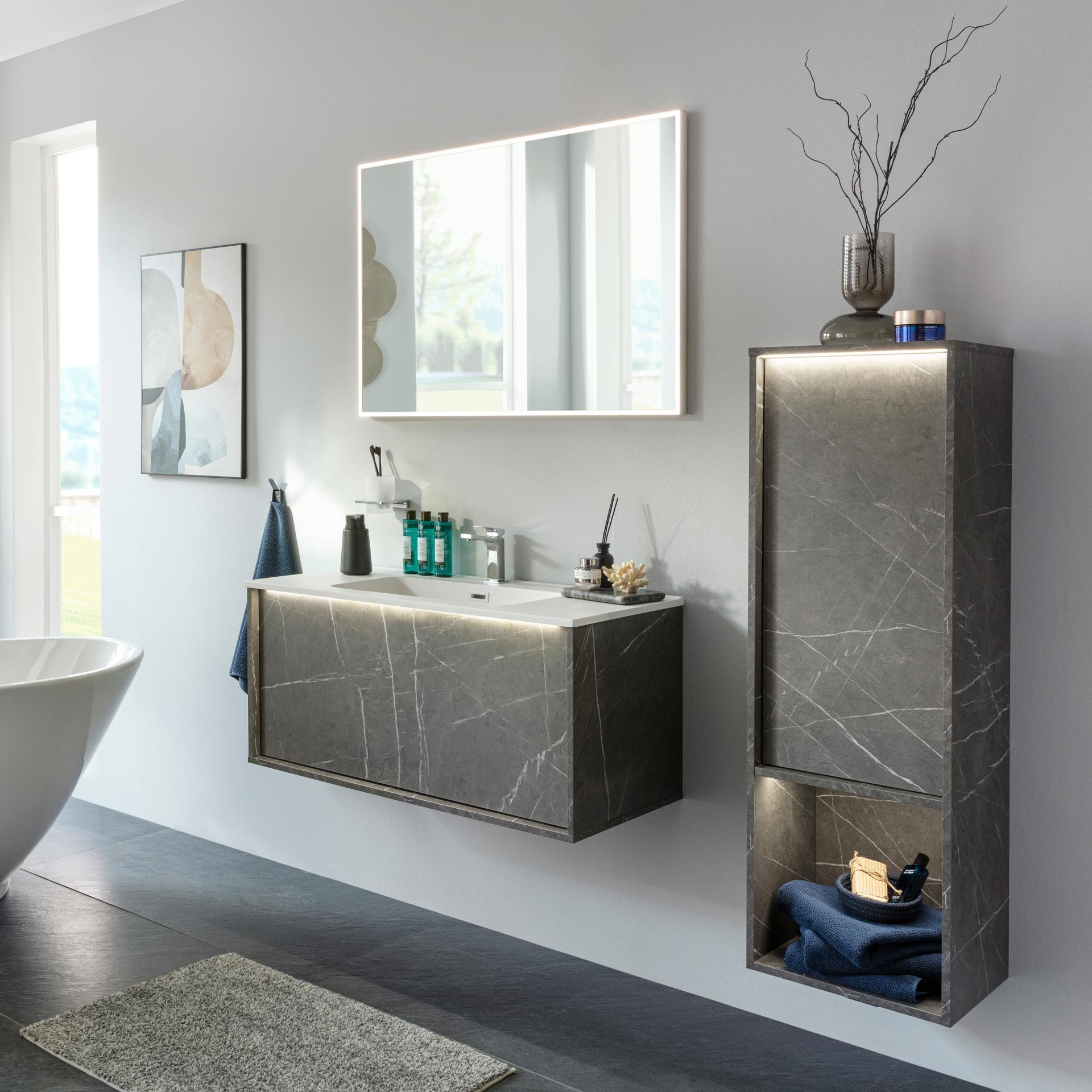 Lanzet DUNE Waschbeckenunterschrank 100,3 cm breit, Marmor Grau, inkl. LED Beleuchtung