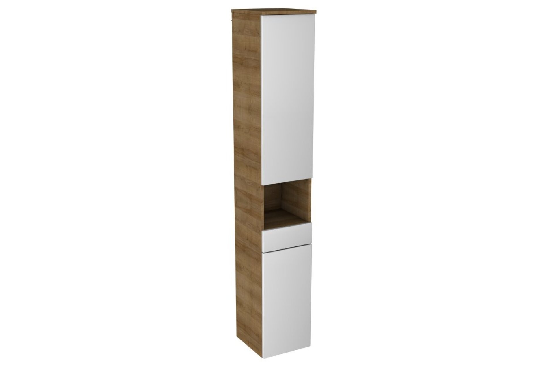 Der in hellbraun gehaltene Hochschrank von Lanzet verleiht Deinem Badezimmer ein edles Aussehen und ist die perfekte Ergänzung zu den Lanzet Waschtischunterschränken. Die hellen Fronten in Weiß Hochglanz bieten einen angenehmen Kontrast zum Korpus des Hochschranks. Der Schrank ist im Design zeitlos und formschön gestaltet. Er bietet dank mehrerer Ablagefächer und einer ausziehbaren Schublade mit Einzugsdämpfung genügend Stauraum und ermöglicht eine praktische Verstauung der Handtücher oder sonstiger Baduntensilien. Der Hochschrank von Lanzet ist auch mit Türanschlag rechts verfügbar .