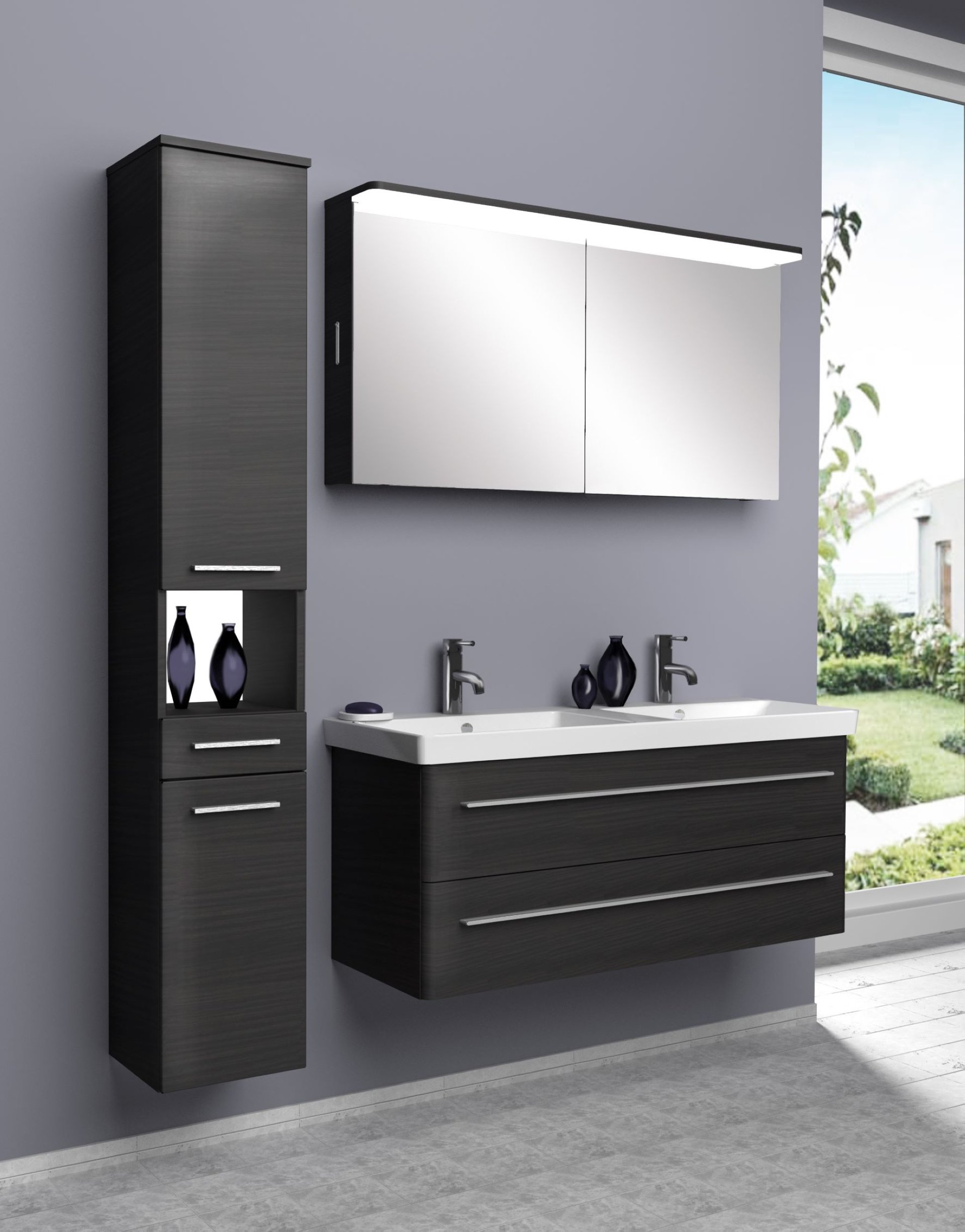 - Farbe: Korpus und Front Schwarz, Design: Dark Oak