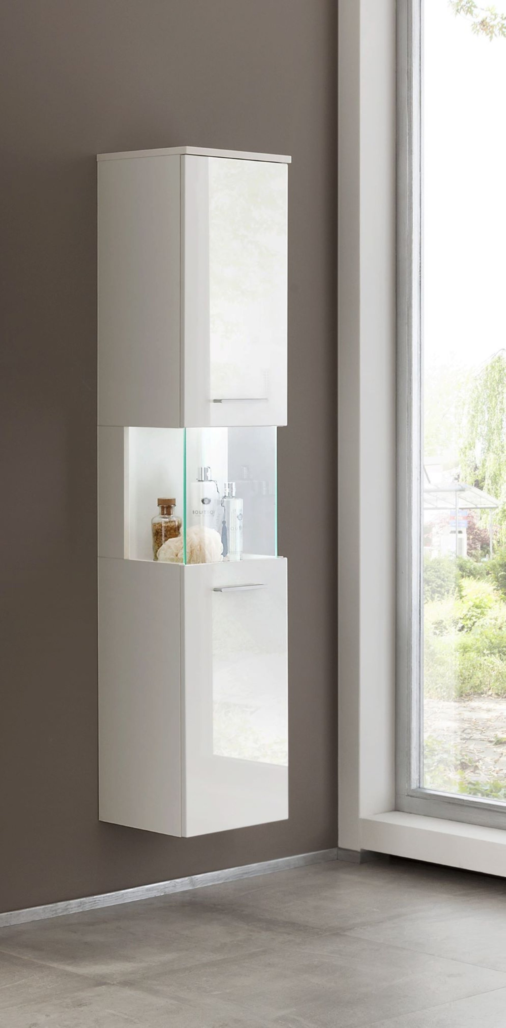 Der in Weiß Glanz gehaltene Hochschrank von Lanzet verleiht Deinem Badezimmer ein edles Aussehen und ist die perfekte Ergänzung zu den Lanzet Waschtischunterschränken. Der Blickfang ist die Glasfront in der Mitte des Hochschranks sowie die LED-Beleuchtung. Im Design zeitlos und formschön gestaltet bietet der Schrank dank mehrerer Ablagefächer genügend Stauraum und ermöglicht eine praktische Verstauung der Handtücher oder sonstiger Badutensilien. Die Beleuchtung kann alternativ auch über den Lanzet Bewegungsmelder angeschlossen werden. Bitte beachte, dass Du dann noch den Bewegungsmelder (Art. Nr. 7934012) oder den LED-Treiber mit Schalter (Art.Nr. 7933012) dazu bestellen musst.