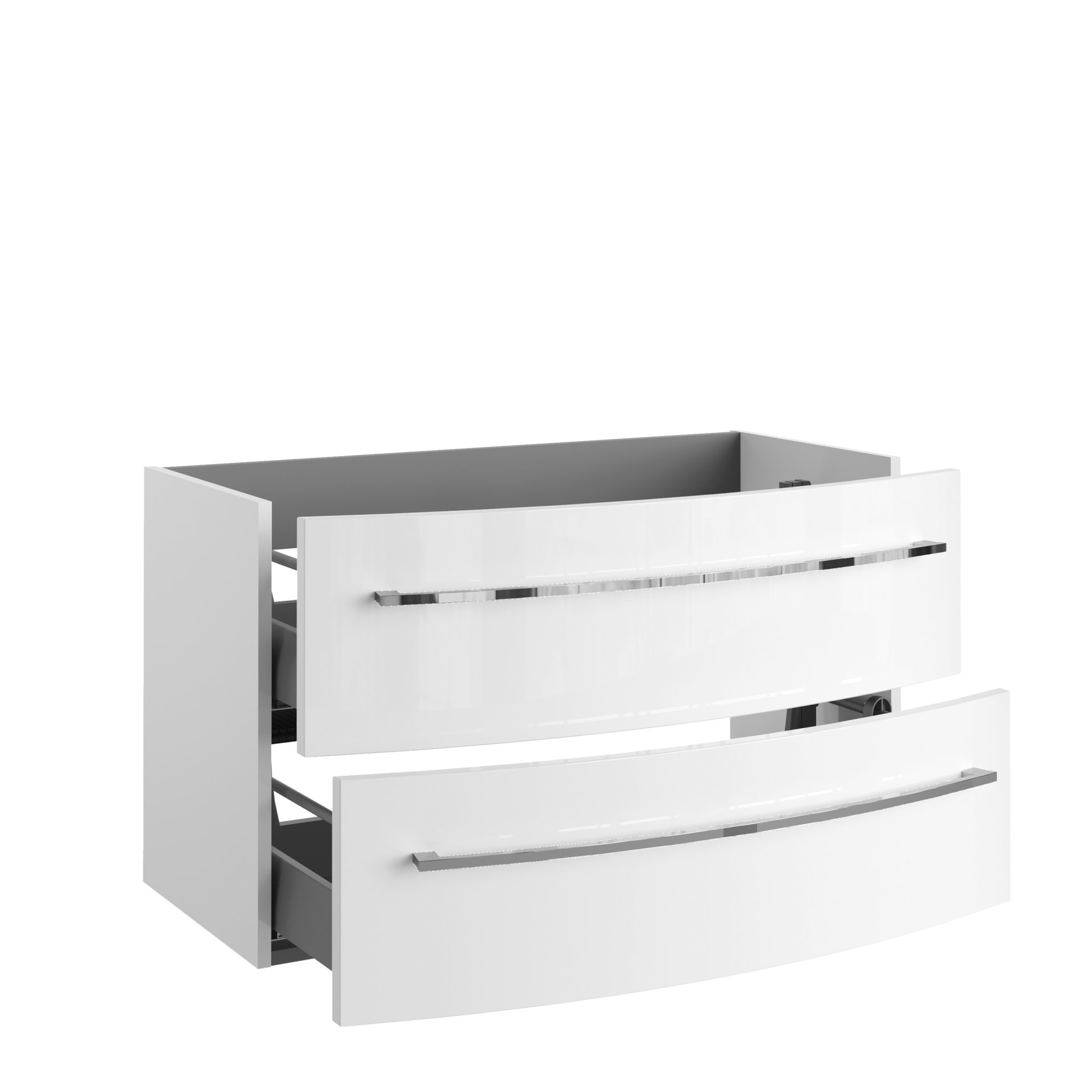 - Ausstattung: 2 Auszüge mit Einzugsdämpfer, 2 Griffe, Chrom glänzend