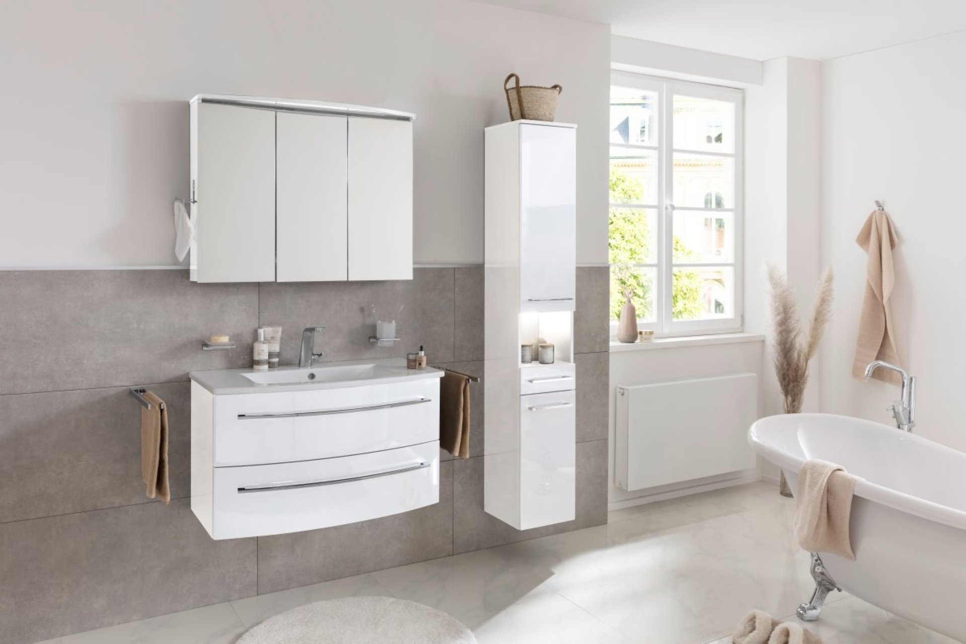 Lanzet Impulso Badmöbel Set 3-teilig 90 cm, Weiß, Spiegelschrank