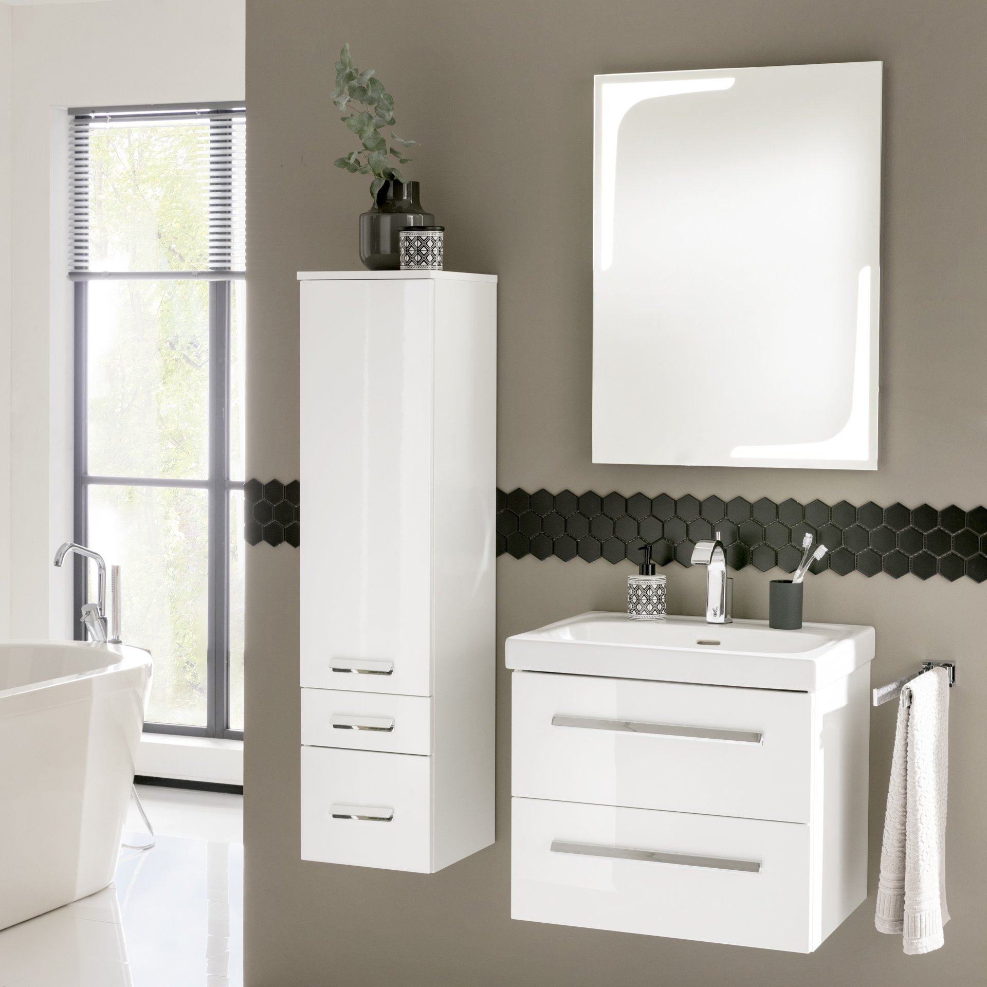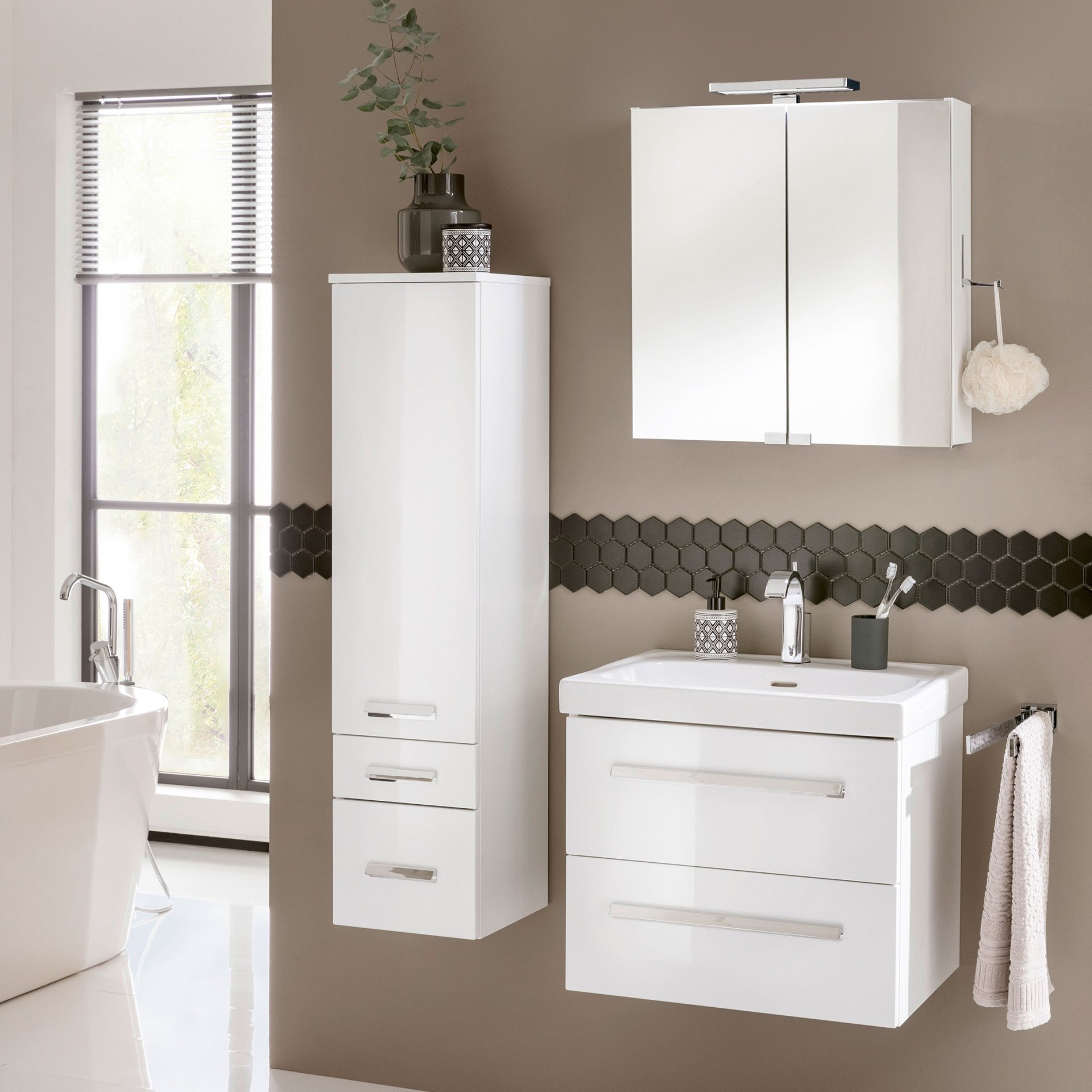 Der in Weiß Glanz gehaltene Waschtischunterschrank von Lanzet K1 verleiht Deinem Badezimmer ein edles Aussehen. Der Unterschrank ist im Design zeitlos und formschön gestaltet. Dank seiner Breite von nur 59,2 cm eignet er sich besonders für kleine Bäder und Gäste-WCs und bietet genügend Stauraum für Handtücher und weitere Badutensilien.