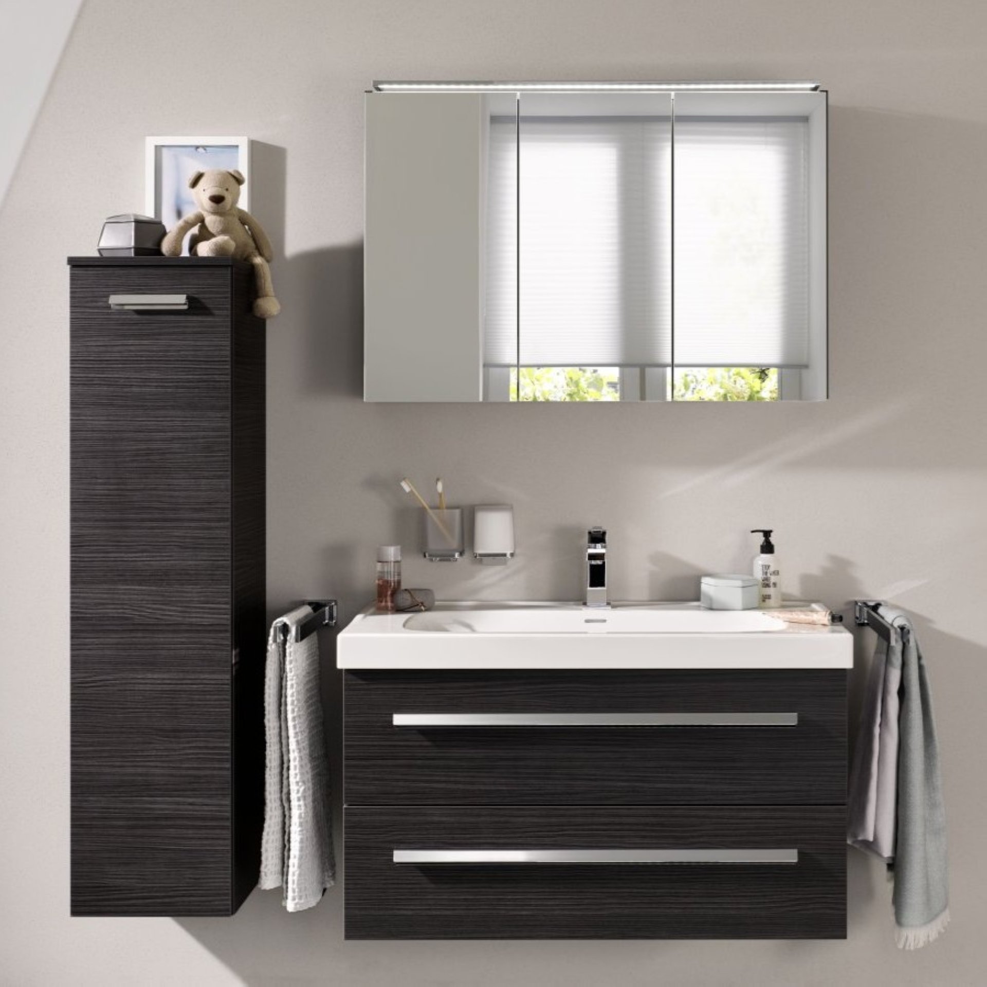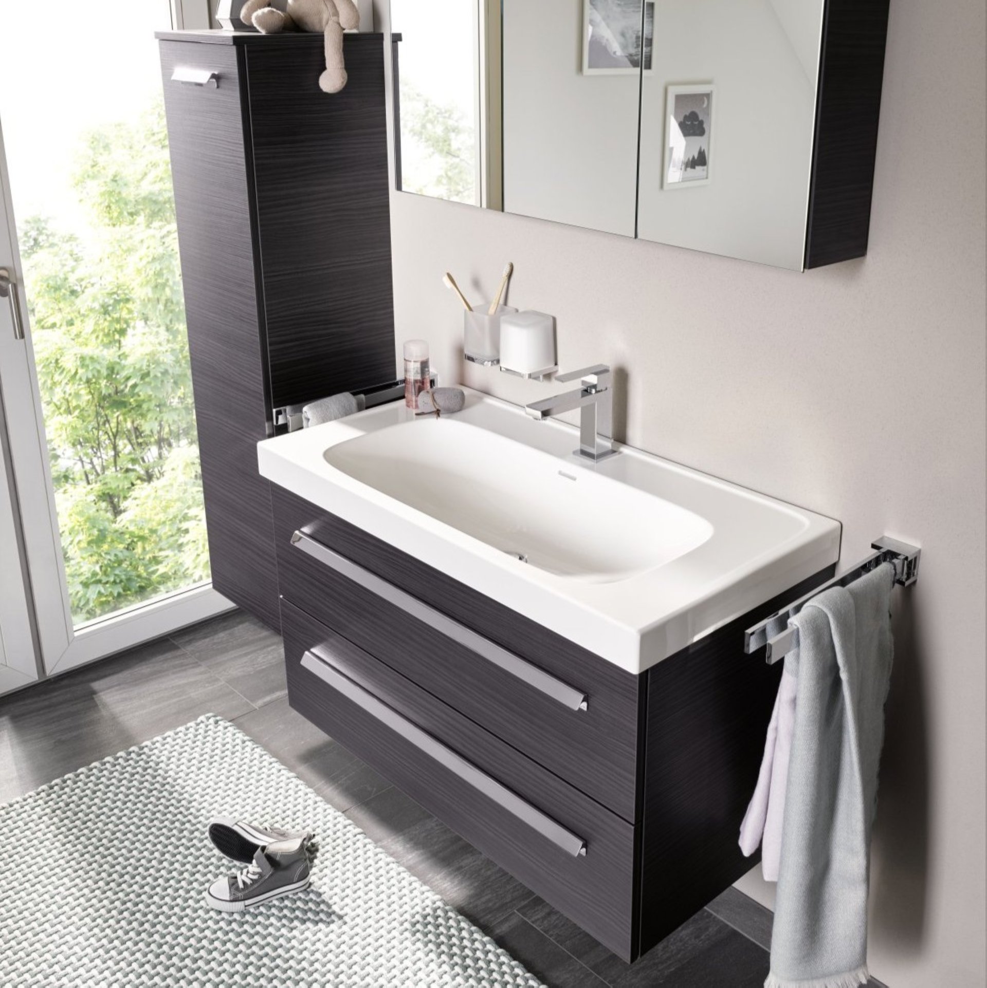 Lanzet K1 Waschbeckenunterschrank 90 cm, Anthrazit Holzoptik