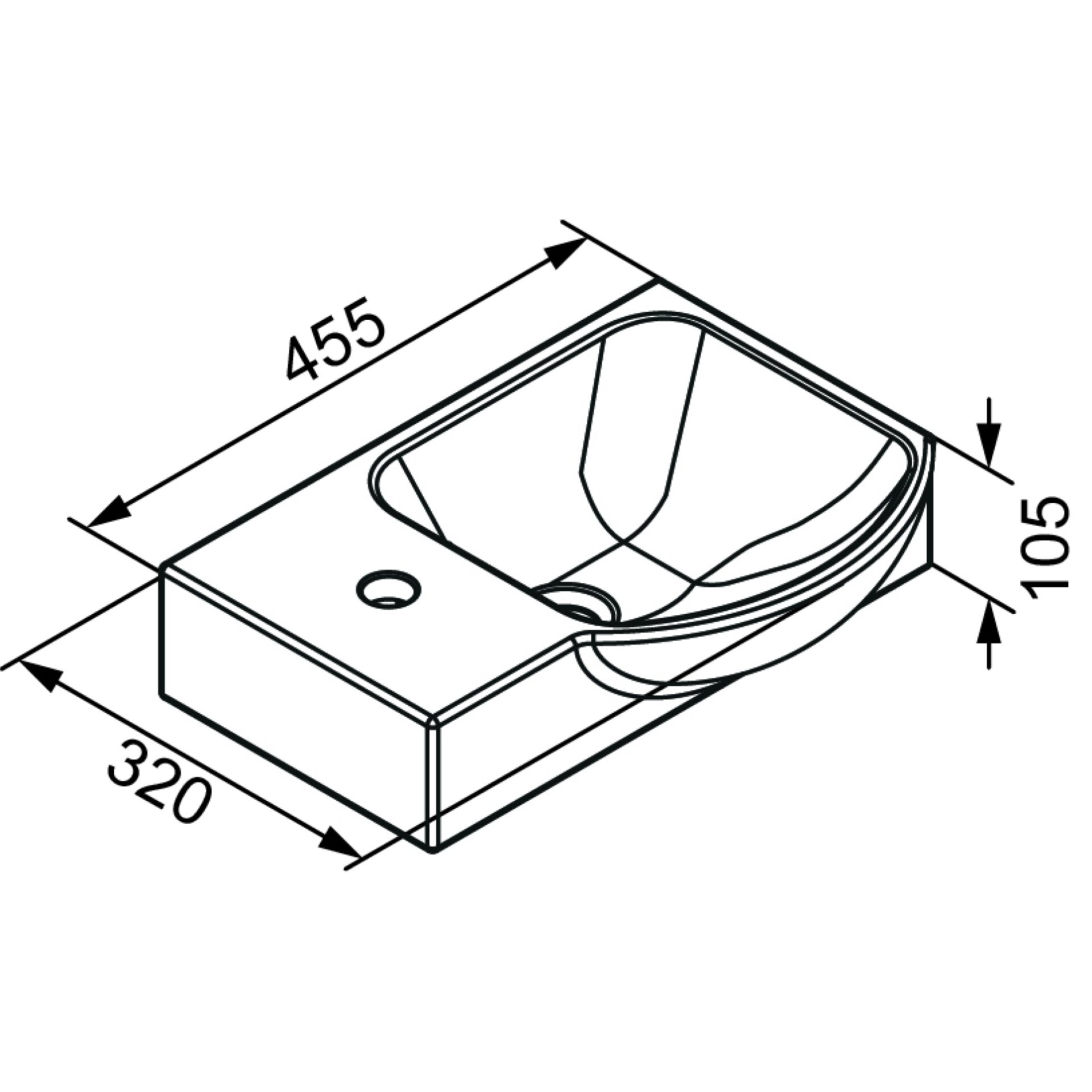 • Ausstattung: Überlaufloch, Becken rechts, Hahnlochbohrung links