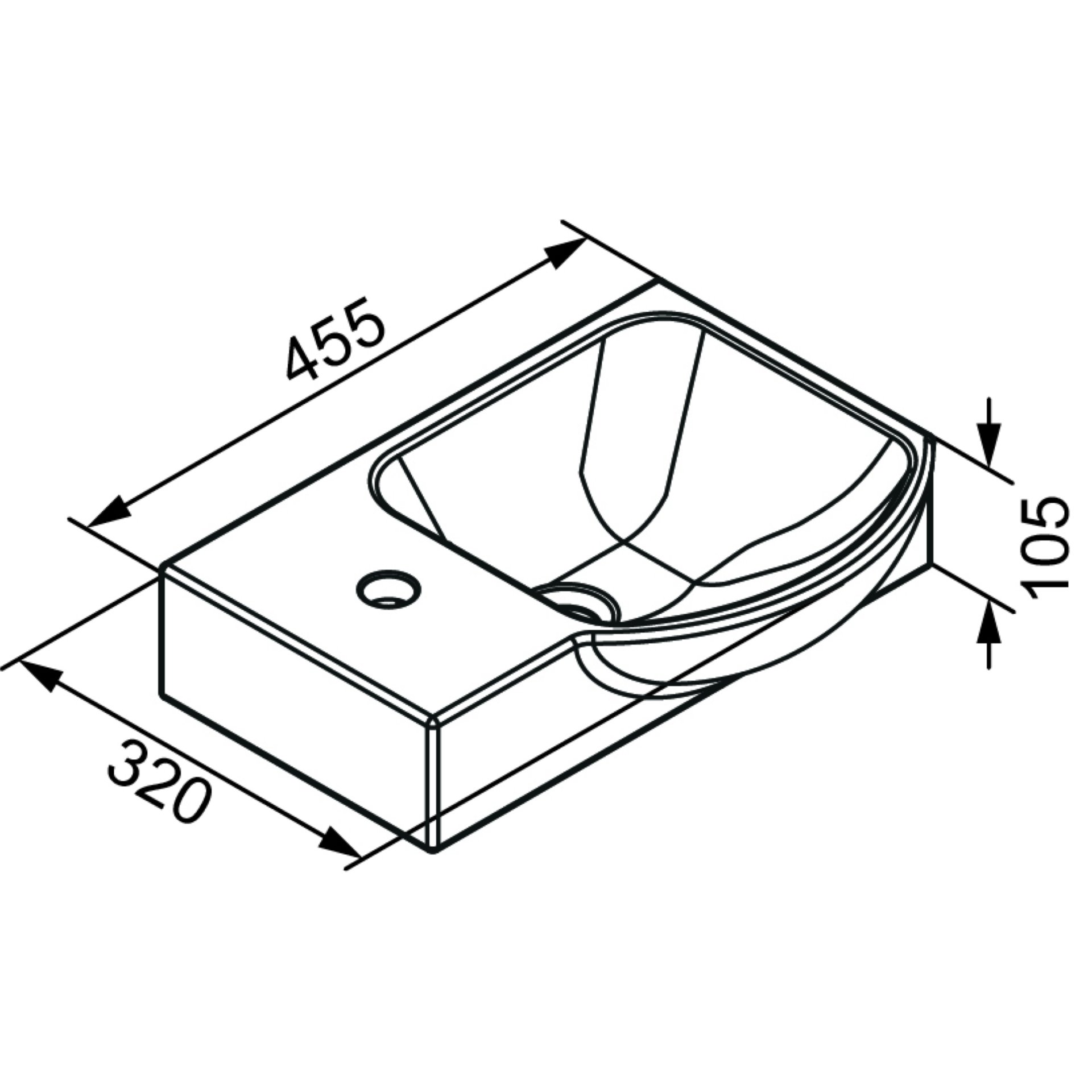 - Ausstattung: Überlaufloch, Becken rechts, Hahnlochbohrung links