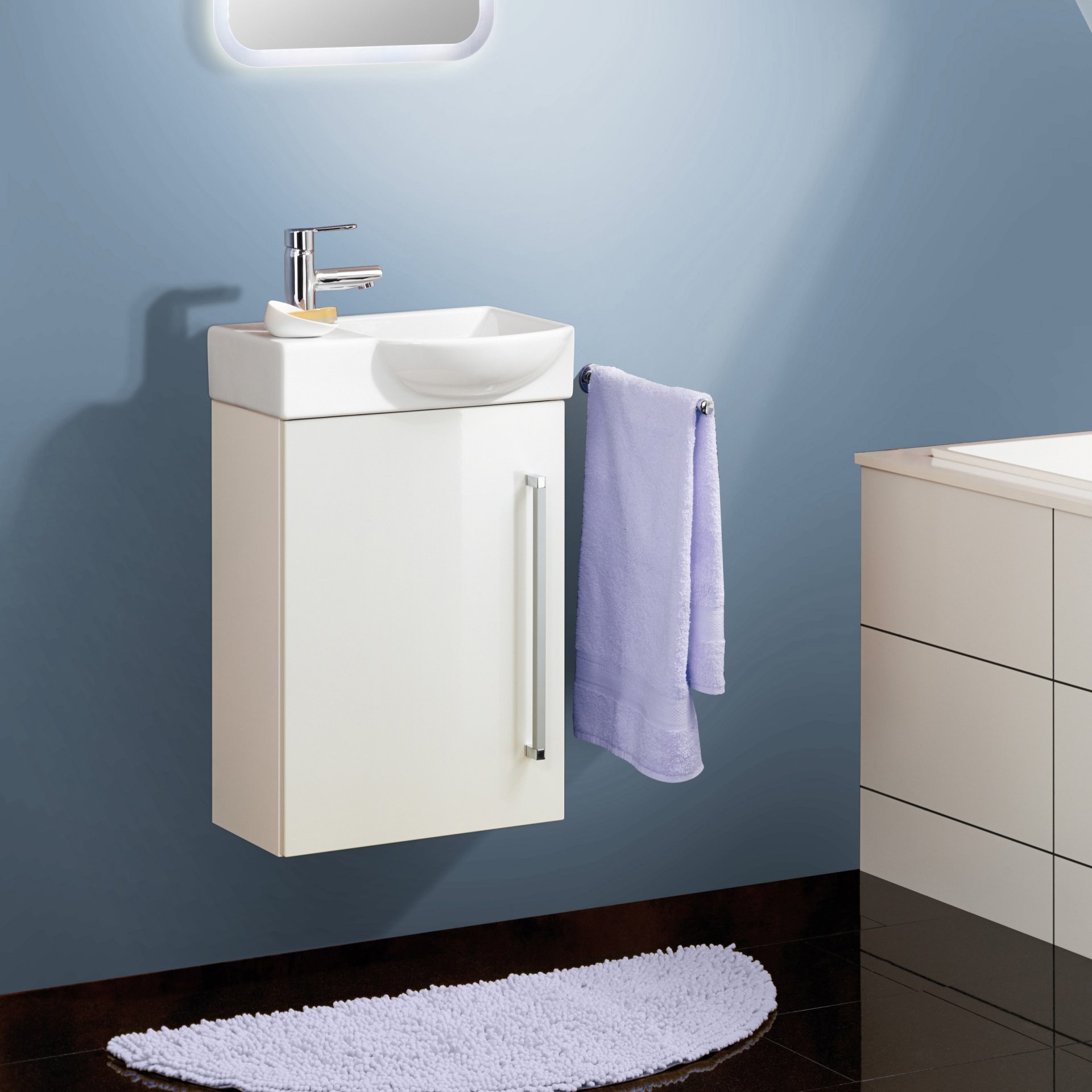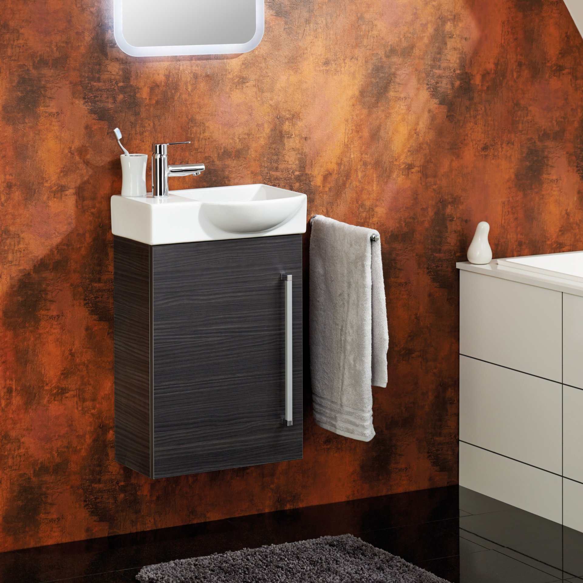 Dieser Waschtisch von Lanzet K3 ist ideal für Ihr Gäste-WC geeignet. Durch seine geringe Breite von nur 45cm passt er problemlos auch in kleinere Bäder. Schlicht aber dennoch designtechnisch überzeugend wertet er Dein Bad auf. Passend dazu finden Sie unsere Waschbeckenunterschränke in diversen Dekoren.
