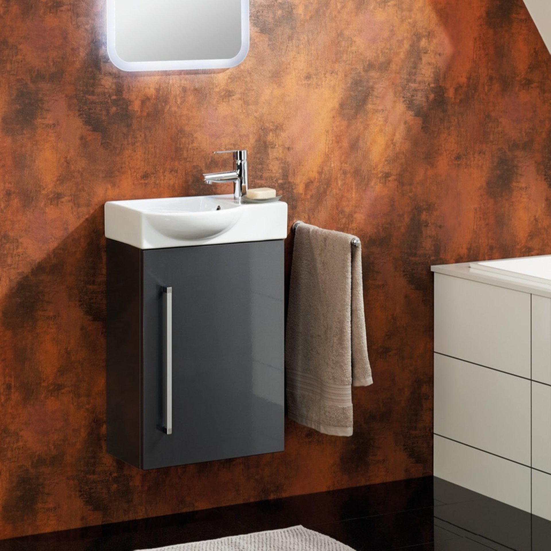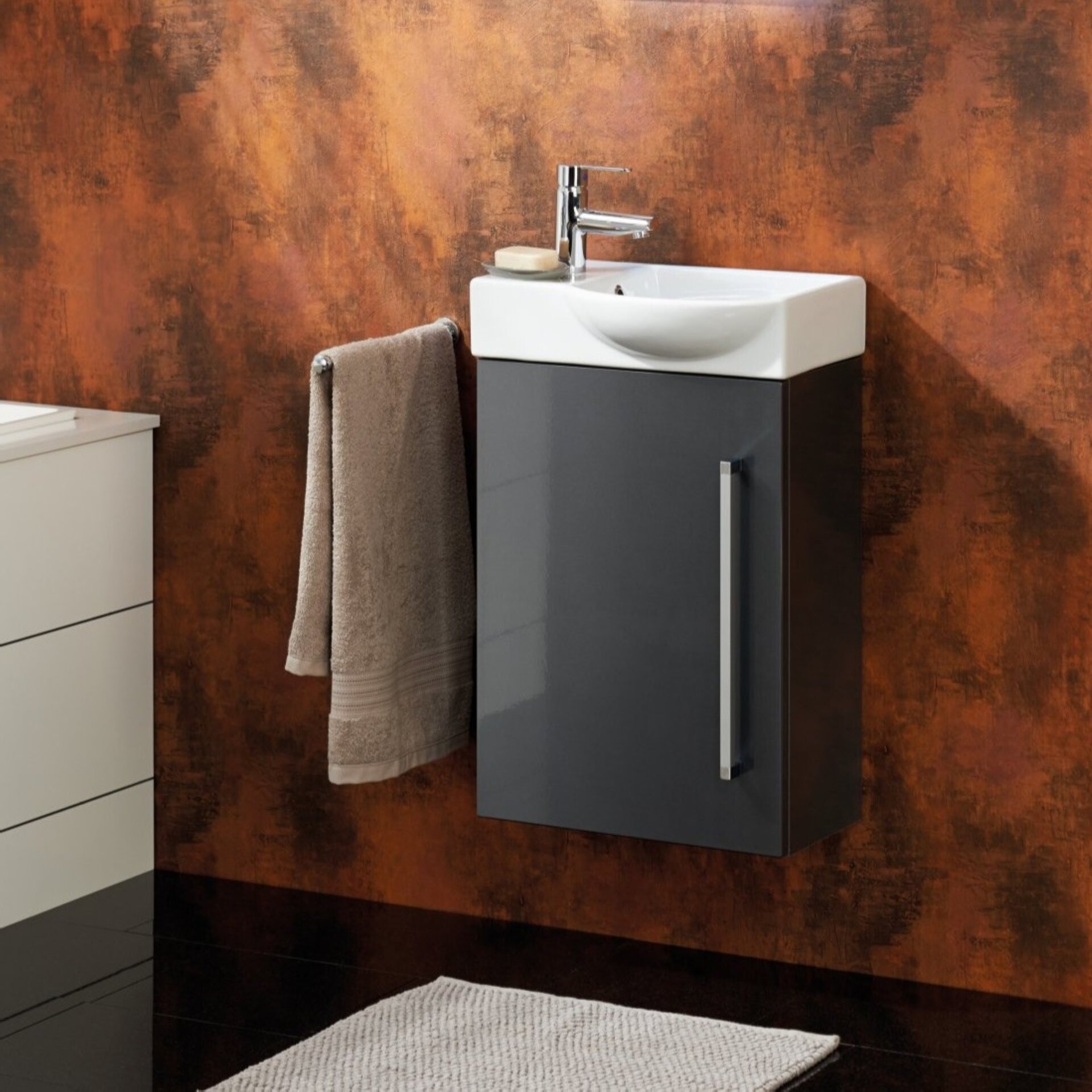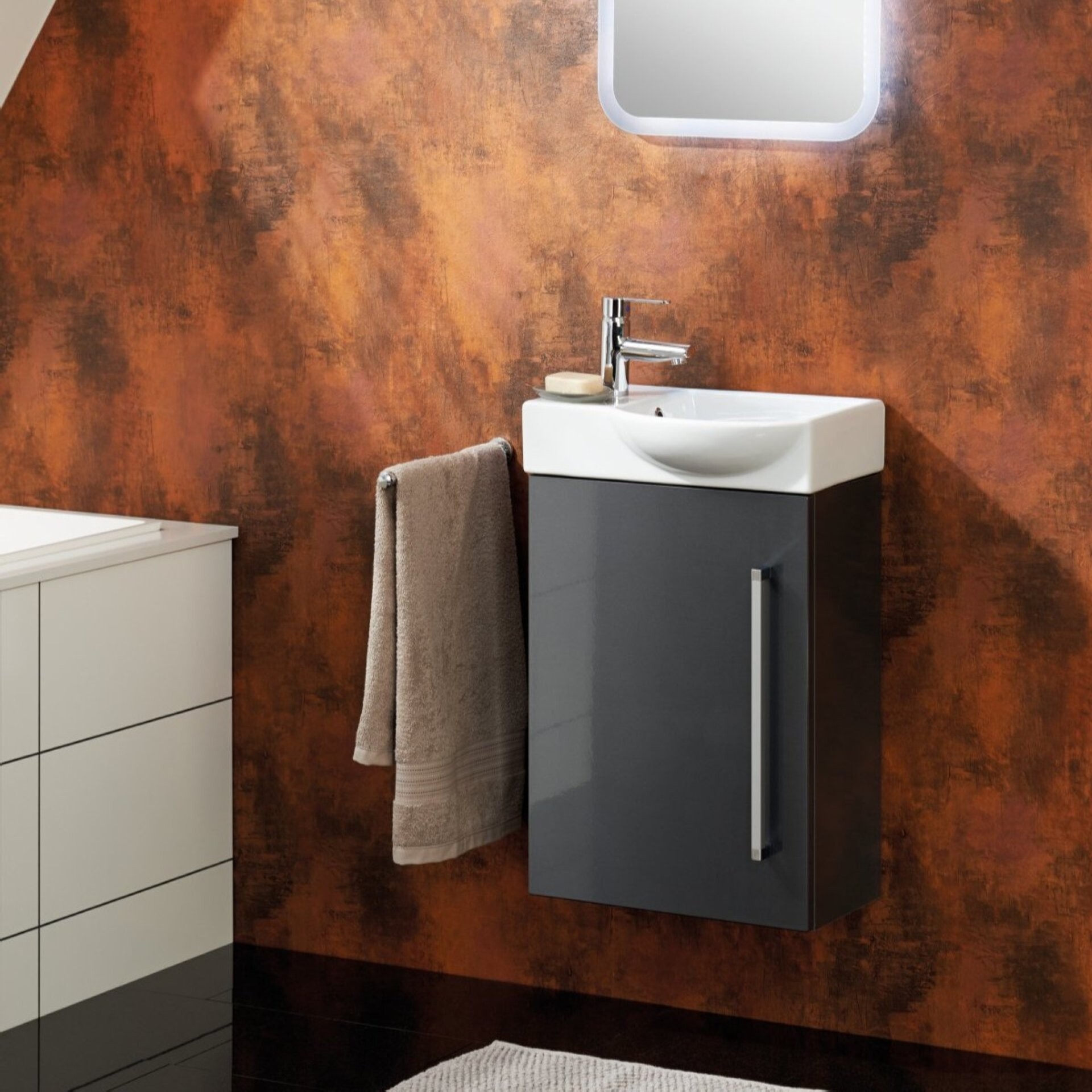 Lanzet K3 Waschbeckenunterschrank Gäste WC 44 cm breit, Anthrazit, Türanschlag links