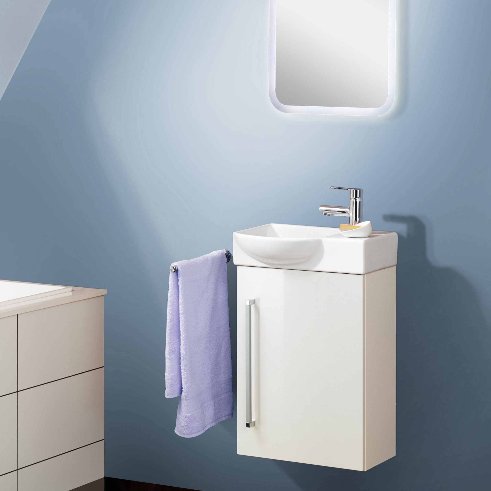 Der in Weiß Glanz gehaltene Waschtischunterschrank von Lanzet K3 verleiht Deinem Badezimmer ein edles Aussehen. Der Unterschrank ist im Design zeitlos und formschön gestaltet. Dank seiner Breite von nur 44 cm ist er besonders für kleine Bäder und Gäste-WCs geeignet. Der Waschtischunterschrank ist auch mit Türanschlag rechts verfügbar.