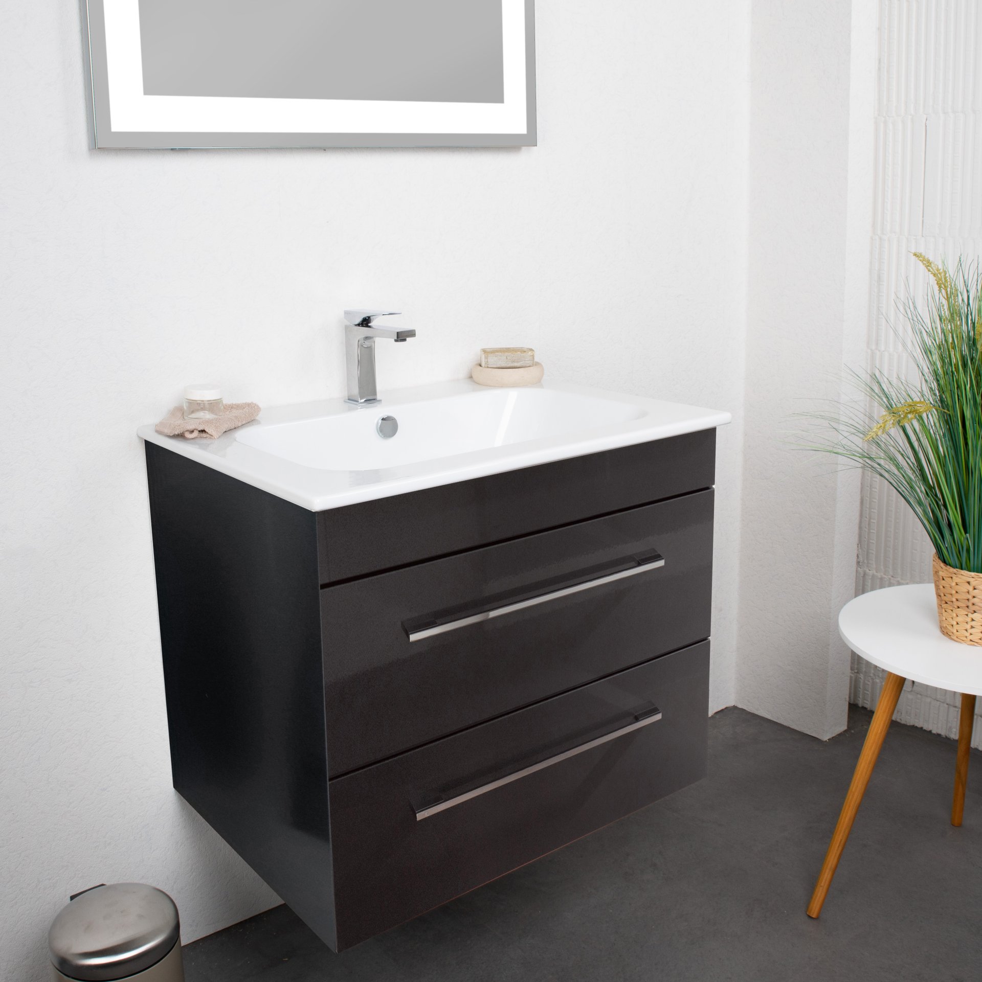 Der in Schwarz Glanz gehaltene Waschtischunterschrank von Lanzet K5 verleiht Deinem Badezimmer ein edles Aussehen. Der Unterschrank ist im Design zeitlos und formschön gestaltet. Mit seiner geringen Breite von nur 68 cm ist er optimal für kleinere Bäder und Gäste-WCs geeignet. Zwei ausziehbare Schubladen mit Einzugsdämpfung bieten ausreichend Stauraum für Handtücher und sonstige Badutensilien.