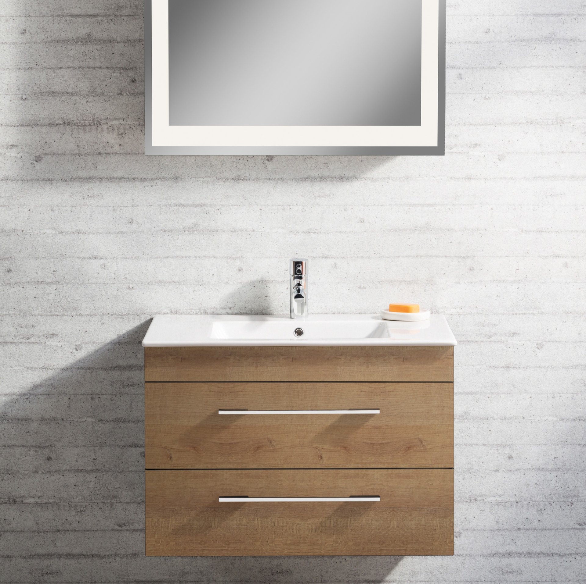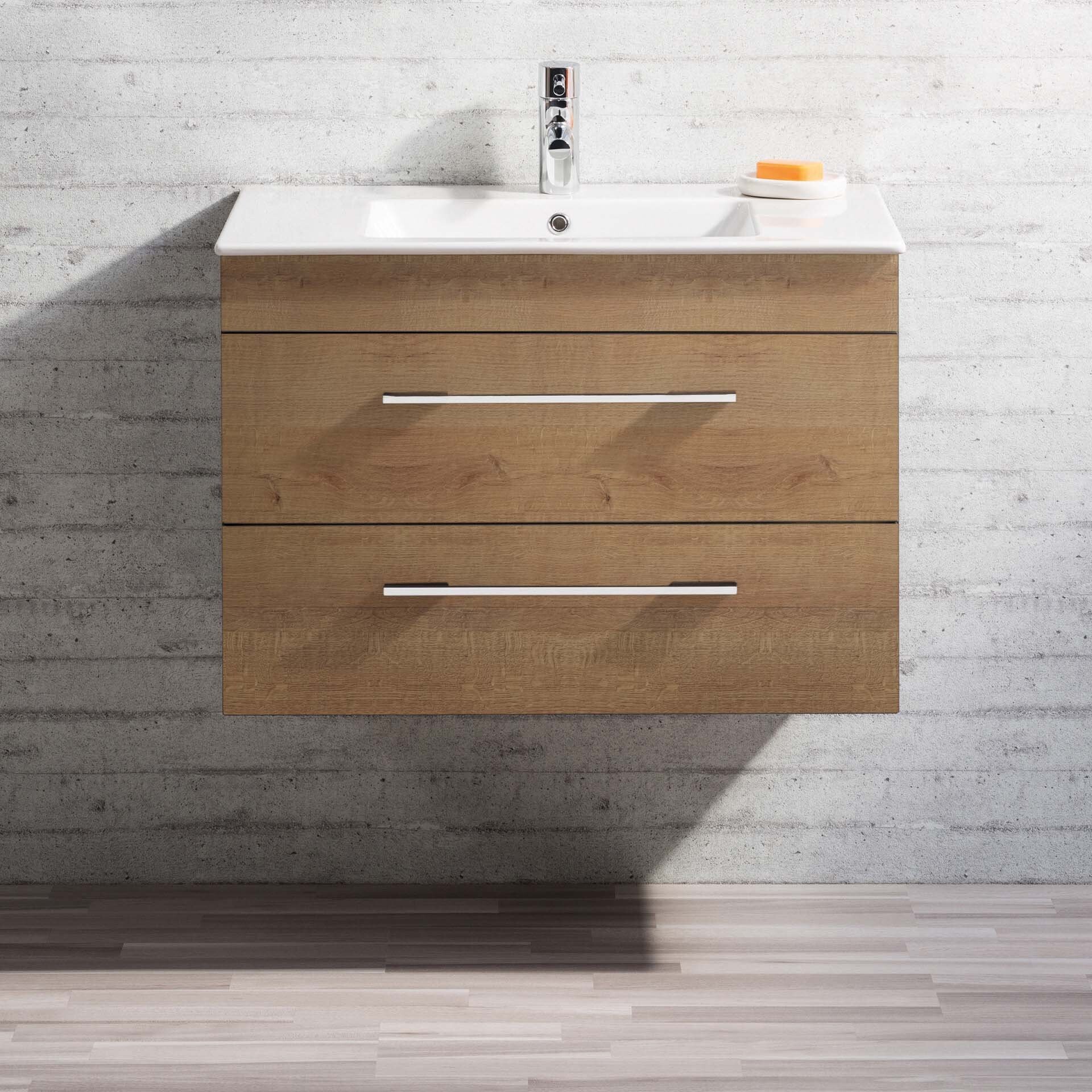Der in Hellbraun gehaltene Waschtischunterschrank von Lanzet K5 besticht durch seine formschöne Gestaltung und verleiht Deinem neuen Badezimmer ein edles Aussehen. Mit seiner Breite von 88cm und zwei ausziehbaren Schubladen mit Einzugsdämpfung bietet der Waschtischunterschrank ausreichend Stauraum für Handtücher und sonstige Badutensilien.