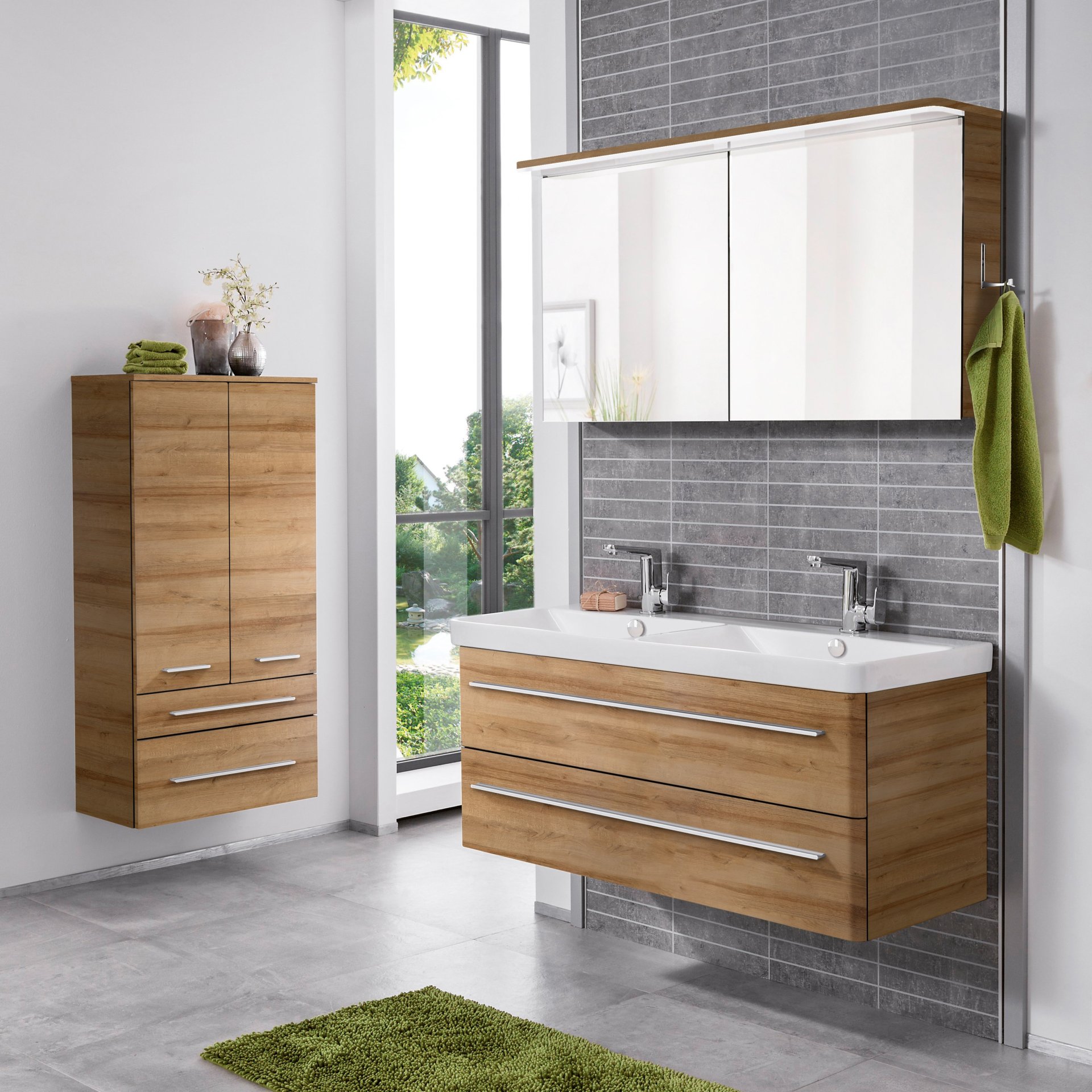 Lanzet K8 Badmöbel Set 2-teilig Doppel-Waschtisch 120 cm Keramik, Hellbraun