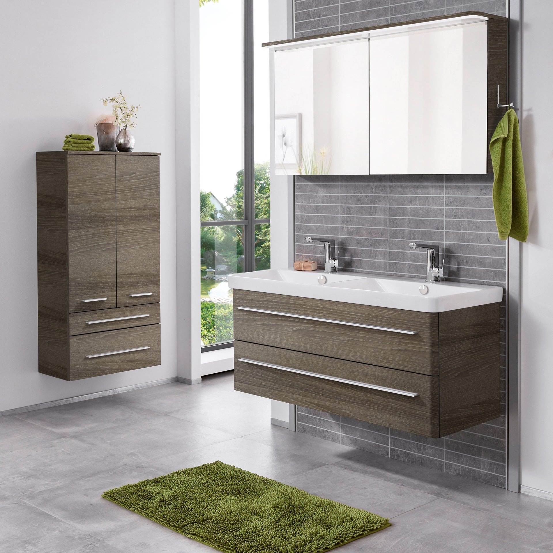 Lanzet K8 Badmöbel Set 3-teilig Doppel-Waschtisch 120 cm, Dunkelbraun, Spiegelschrank