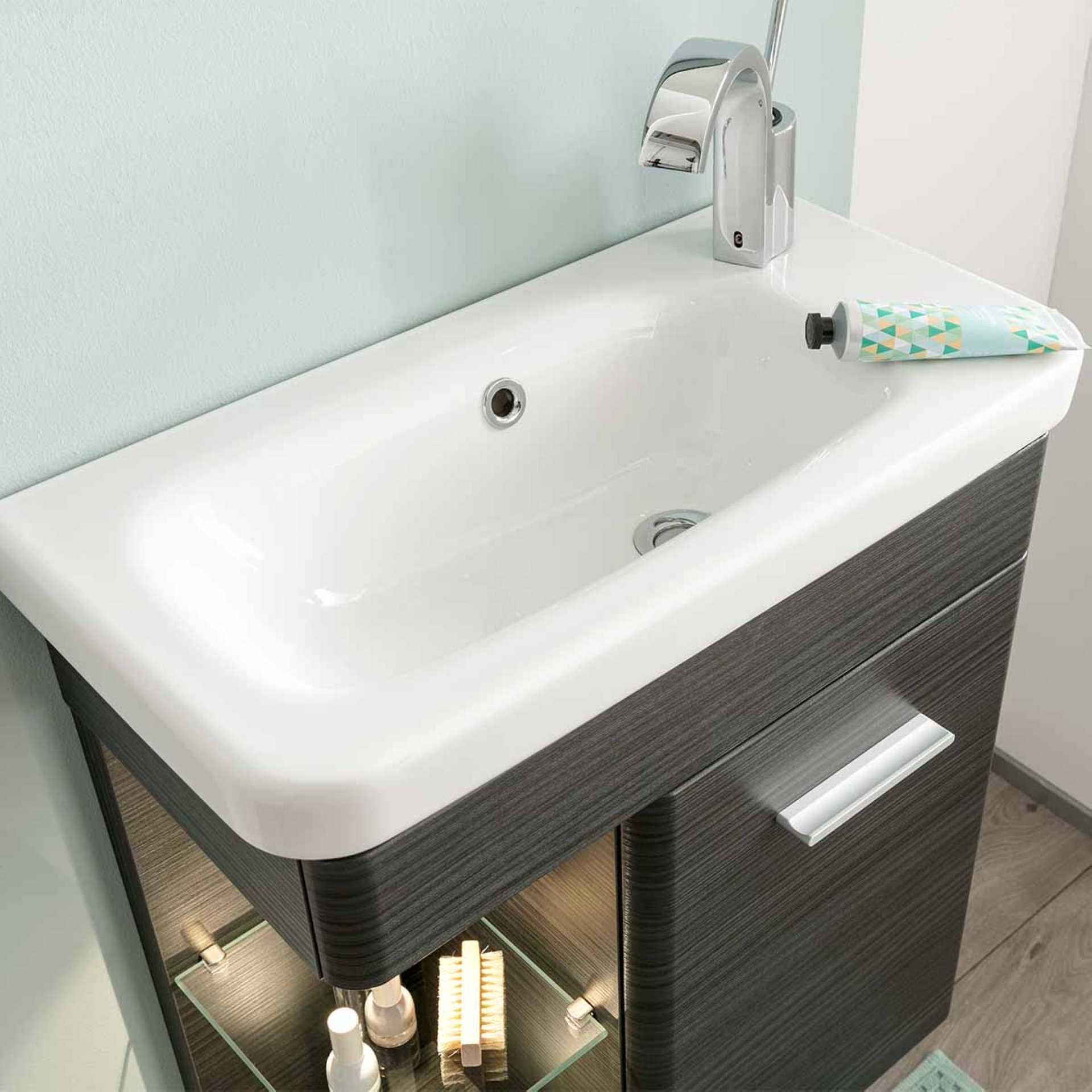 - Besonderheit: tiefe Waschmulde