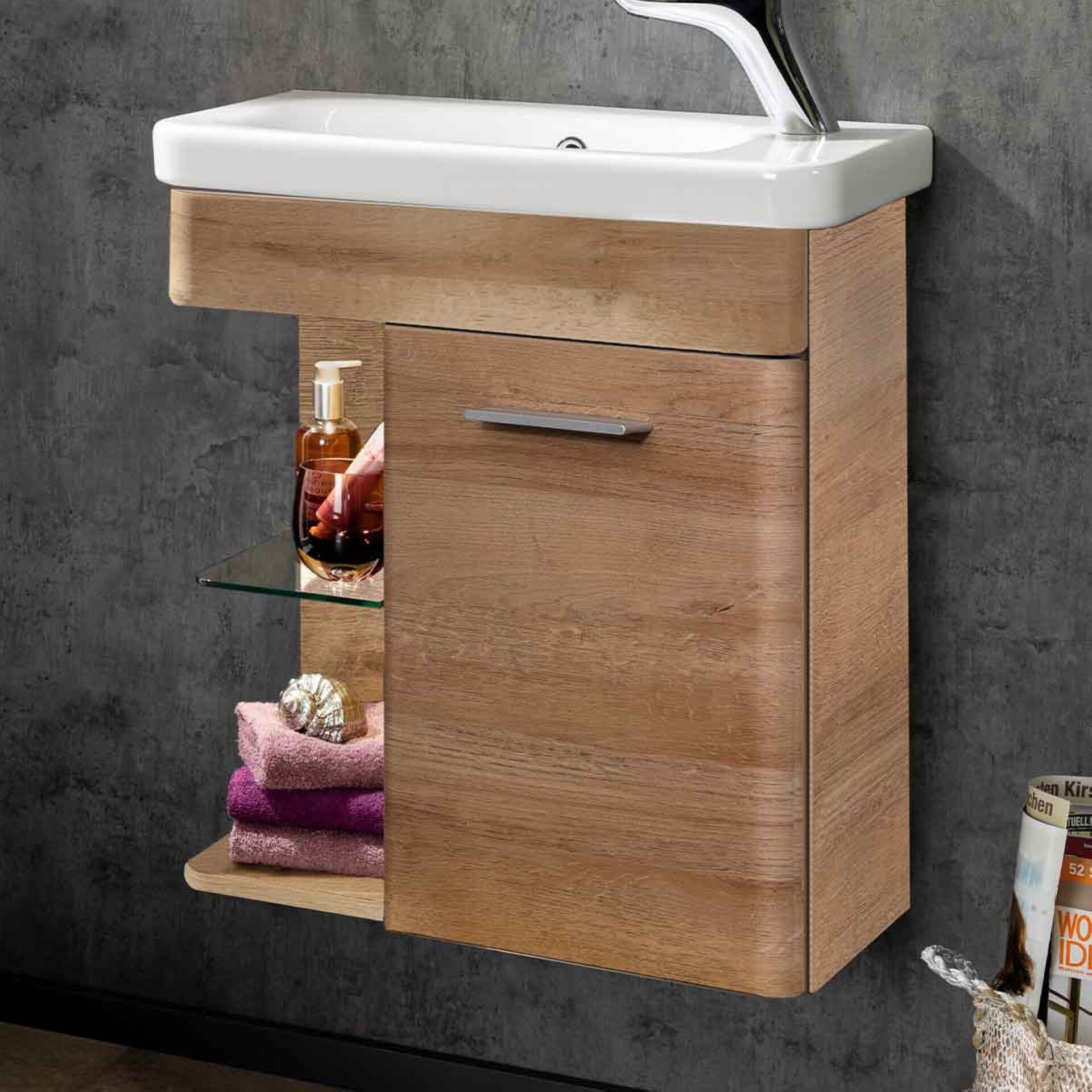Die natürlichen Farbspektren der Eiche sind einzigartig. Der in Berg Eiche/Farbton hellbraun gehaltene Waschtischunterschrank aus der Serie K8 von LANZET bringt diese Farbgebung der Natur in Dein Badezimmer. Das Badmöbel Set eignet sich besonders gut für das moderne Gästebad. Durch die abgerundeten Kanten und seine sanfte Linienführung ist es zeitlos. Sehr gelungen ist der offene Glaseinlegeboden mit dem LED Spot. Er ist Blickfang und Ablagefläche für Deine täglichen Badaccessoires. Indirektes Licht bringt ein beruhigendes und exklusives Ambiente in Dein Bad. Das Besondere: Das Licht ist durch die LED-Technik energiesparend und wird mithilfe eines Bewegungsmelders aktiviert. Er ist unterhalb des Waschtischunterschranks befestigt. Das LANZET K8 Gäste WC Set 60 cm Hellbraun wird gekrönt durch seinen hochwertigen Keramikwaschtisch in Weiß mit seiner tiefen Waschmulde. Das Waschbecken passt sich formvollendet an die Linienführung des Unterschranks an und ist nur als rechte Ausführung erhältlich. Die Waschtischarmatur befindet sich rechts. Als Käufer eines LANZET Badmöbels kannst Du sicher sein, dass alles stimmt. Das Design! Die Qualität des Materials! Die Verarbeitung!. Alle Möbel von LANZET werden von fachkundigem Personal mit viel Liebe zum Detail in Deutschland hergestellt und für Dich vormontiert. Damit sind sie rasch in Deinem Badezimmer aufgestellt.