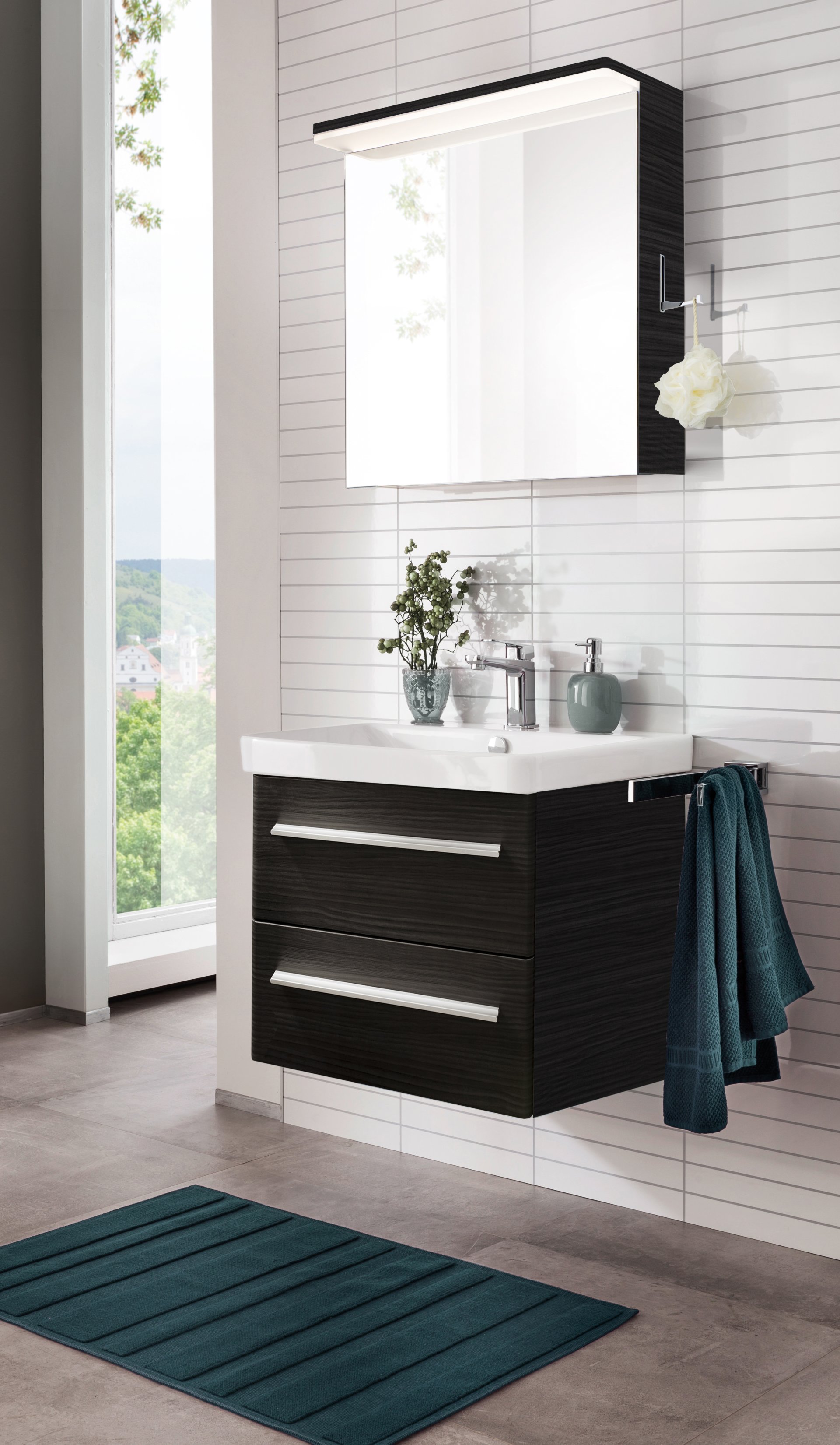 - Farbe/Design: Schwarz/Dark Oak (Feuchtraumoptimierte Holznachbildung)