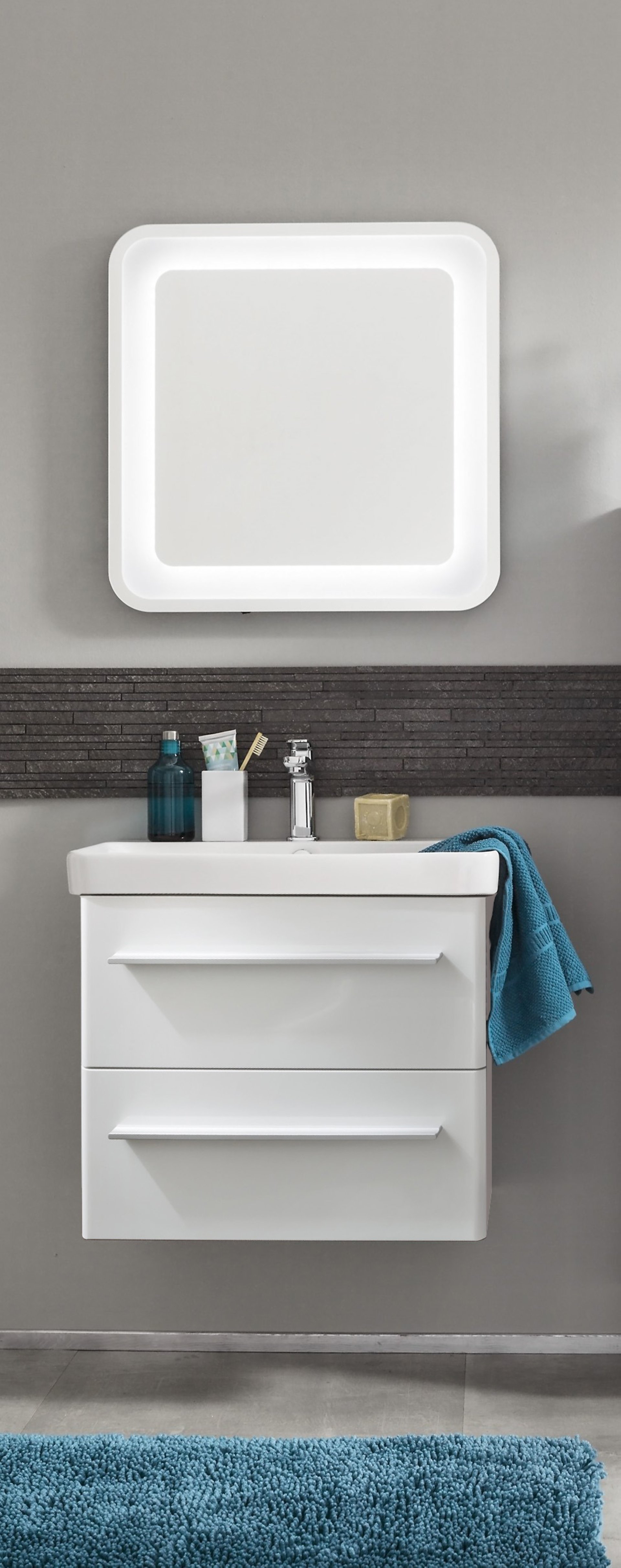 Die Farbe Weiß steht für Vollkommenheit und Leichtigkeit. Gleichzeitig sorgt sie in Deinem Badezimmer für Klarheit und einen zeitlos schönen Chic. Der 56 cm breite Waschtischunterschrank in Weiß Glanz aus der Serie K8 von Lanzet zeichnet sich durch seine abgerundeten Kanten und seine sanfte Form aus. Die zwei großzügigen Schubladen mit Einzugsdämpfung bieten viel Stauraum. So sind Deine Badutensilien schnell verstaut und immer griffbereit. Auf Grund seiner Maße eignet sich der Waschtischunterschrank mit seiner geringen Breite besonders für kleine Bäder und Gäste-WCs. Möbel von Lanzet werden von fachkundigem Personal für Dich mit viel Liebe zum Detail in Deutschland hergestellt. Damit ist der Lanzet K8 Waschtischunterschrank 56 cm Weiß rasch in Deinem Badezimmer aufgestellt.