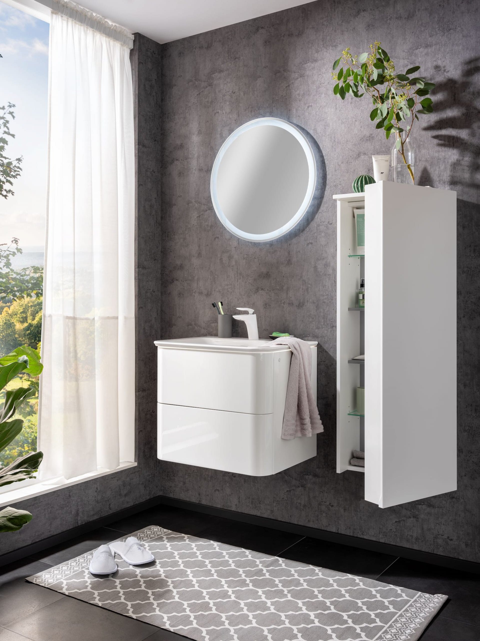 Du weißt nicht mehr, wo Du deine unentbehrlichen Bad Utensilien lagern sollst und suchst nach Ordnung? Dann hast Du mit dem exklusive Kofferschrank von der Firma Lanzet genau das Richtige gefunden! Der elegante Badschrank bietet Dir viele Möglichkeiten strukturiert, unauffällig und platzsparend Gegenstände zu verstauen. Dank den 5 Reling Fächern in der Türinnenseite mit dem Anschlag rechts und den 2 Glaseinlegeböden ist für ausreichend Stauraum gesorgt. Die glänzende Front in strahlendem Weiß verzaubert Dein Badezimmer im Hand umdrehen. Die versteckte Griffmulde in der Tür verleiht dem Schrank einen eleganten Touch! Bei den Maßen haben sich die Designer bewusst für eine unaufdringliche Breite (40,5 cm) und Höhe (115,5 cm) entschieden. Als Käufer eines Lanzet Badmöbels kannst Du sicher sein, dass alles stimmt. Das Design! Die Qualität! Die Verarbeitung! Der Lanzet Kofferschrank 40,5 cm, Weiß, rechts wird in Deutschland hergestellt und vormontiert geliefert.
