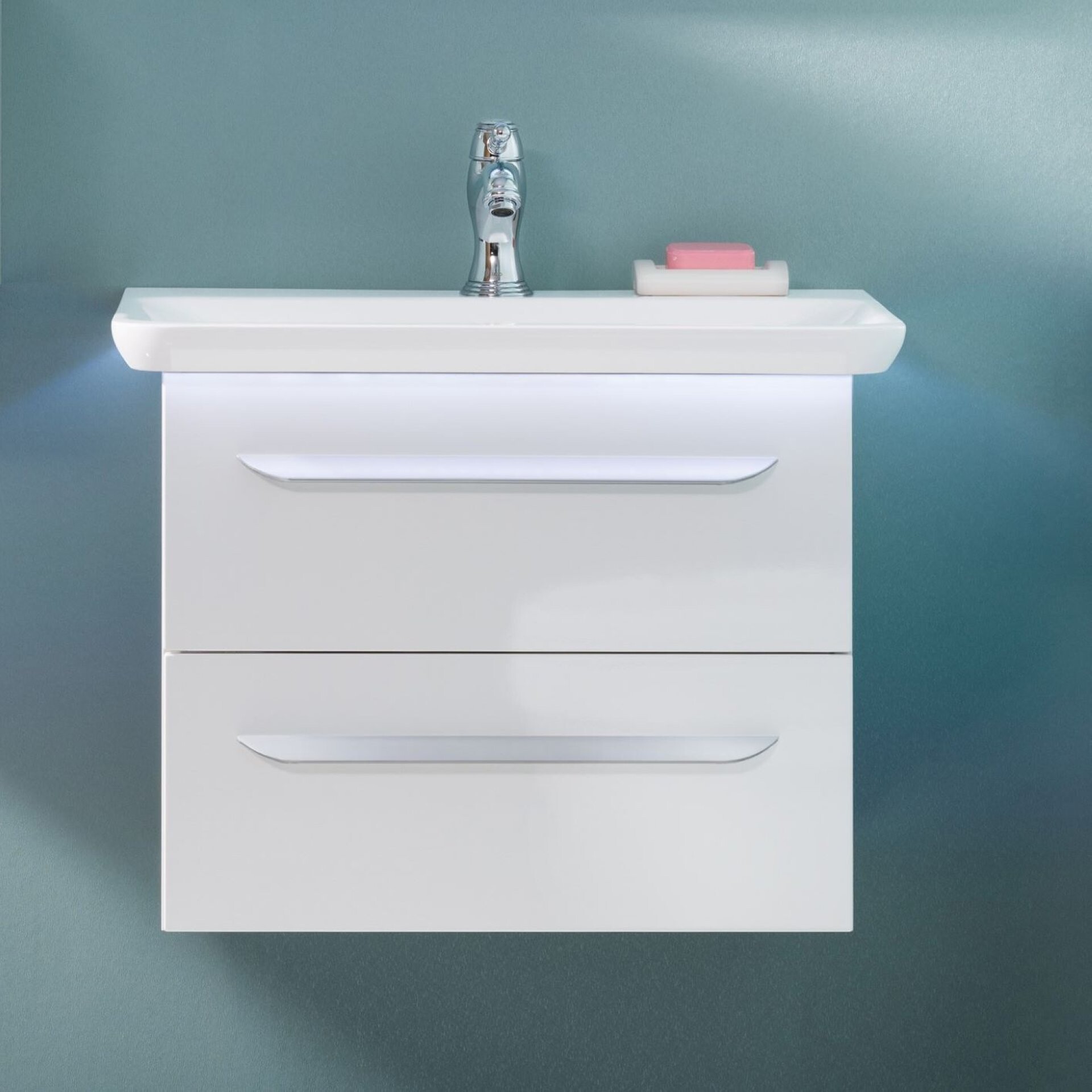 Lanzet M9 Badmöbel Set 3-teilig 70 cm, Weiß, Waschtischbeleuchtung
