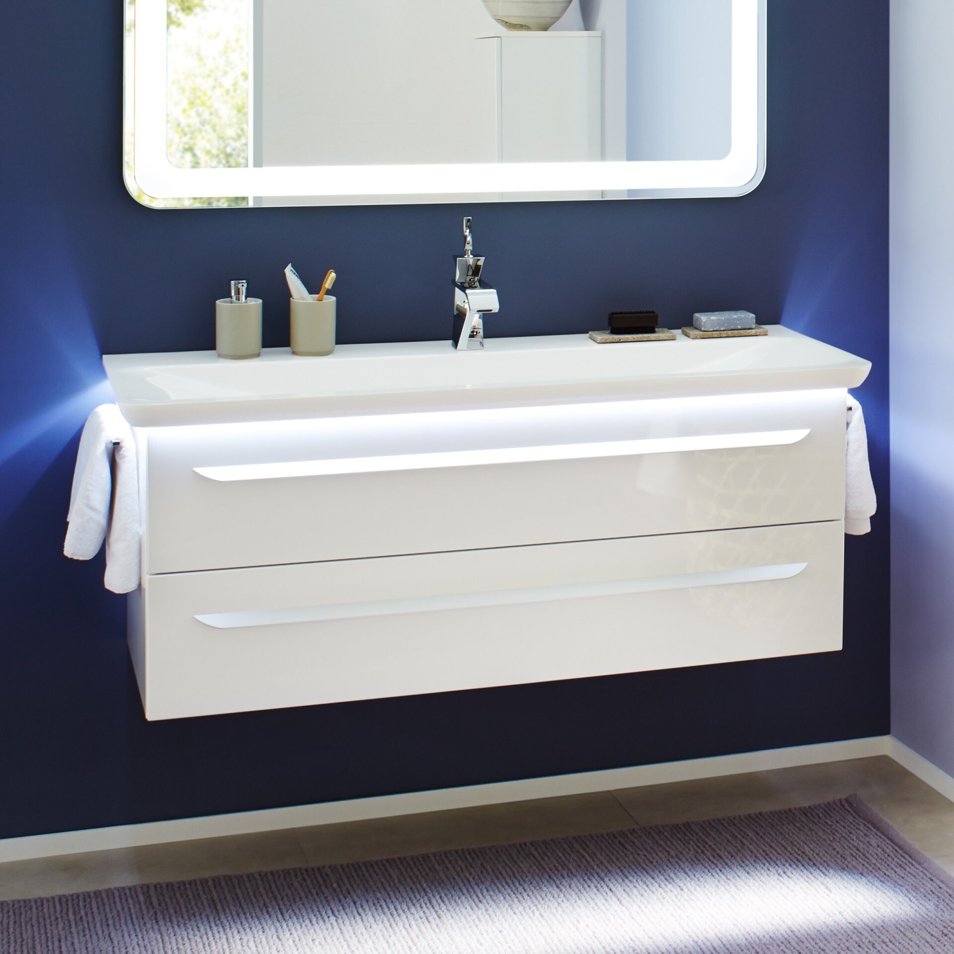 Lanzet M9 Badmöbel Set 4-teilig 130 cm, Weiß, Waschtischbeleuchtung + LED Spiegelelement