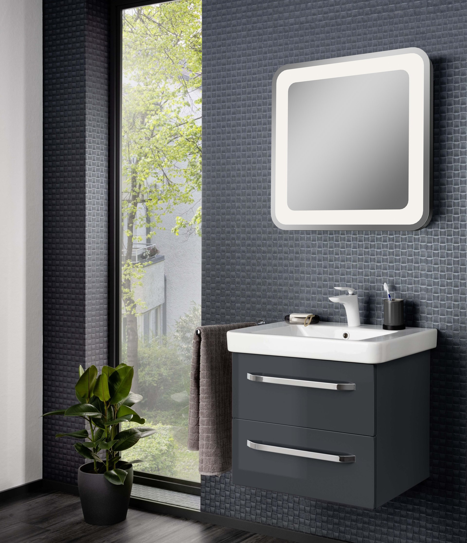 Du bist auf der Suche nach einem Spiegel für Dein kleines Badezimmer oder Dein Gäste WC, der eine luxuriöse Atmosphäre schafft? Dann hast Du mit dem Spiegel aus der Serie M9 der Firma Lanzet genau das Richtige gefunden. Der hochwertige Spiegel mit einer Breite von 60 cm ist das perfekte Zusammenspiel von Funktionalität und Eleganz. Seine abgerundeten Kanten verleihen dem LED Spiegel eine zeitlose und moderne Ästhetik. Mit der umlaufenden LED-Beleuchtung ist für eine blendfreie und gleichmäßige Ausleuchtung gesorgt. Zusätzlich garantiert die Lichtfarbe von 4250 Kelvin ein natürliches Licht. Perfekt für das tägliche Pflegeritual und Dein Styling. Dank der berührungslosen Sensorsteuerung lässt sich der Spiegel mühelos ein- und ausschalten. Sollte das Licht für Dich manchmal zu hell sein, dann kannst Du die Beleuchtung dimmen. Egal ob im Bad oder im Schlafzimmer, das Spiegelelement setzt stilvolle Akzente. Lass Dich von dem Lanzet M9 Spiegel 60 cm begeistern und verleihe Deinem Zuhause einen Hauch von Luxus. Seit mehr als 150 Jahren produziert die Firma Lanzet Badmöbel in Deutschland. Das spricht für Kompetenz und Erfahrung. Qualität Made in Germany. Von engagierten und fachkundigen Mitarbeitern entwickelt und hergestellt.