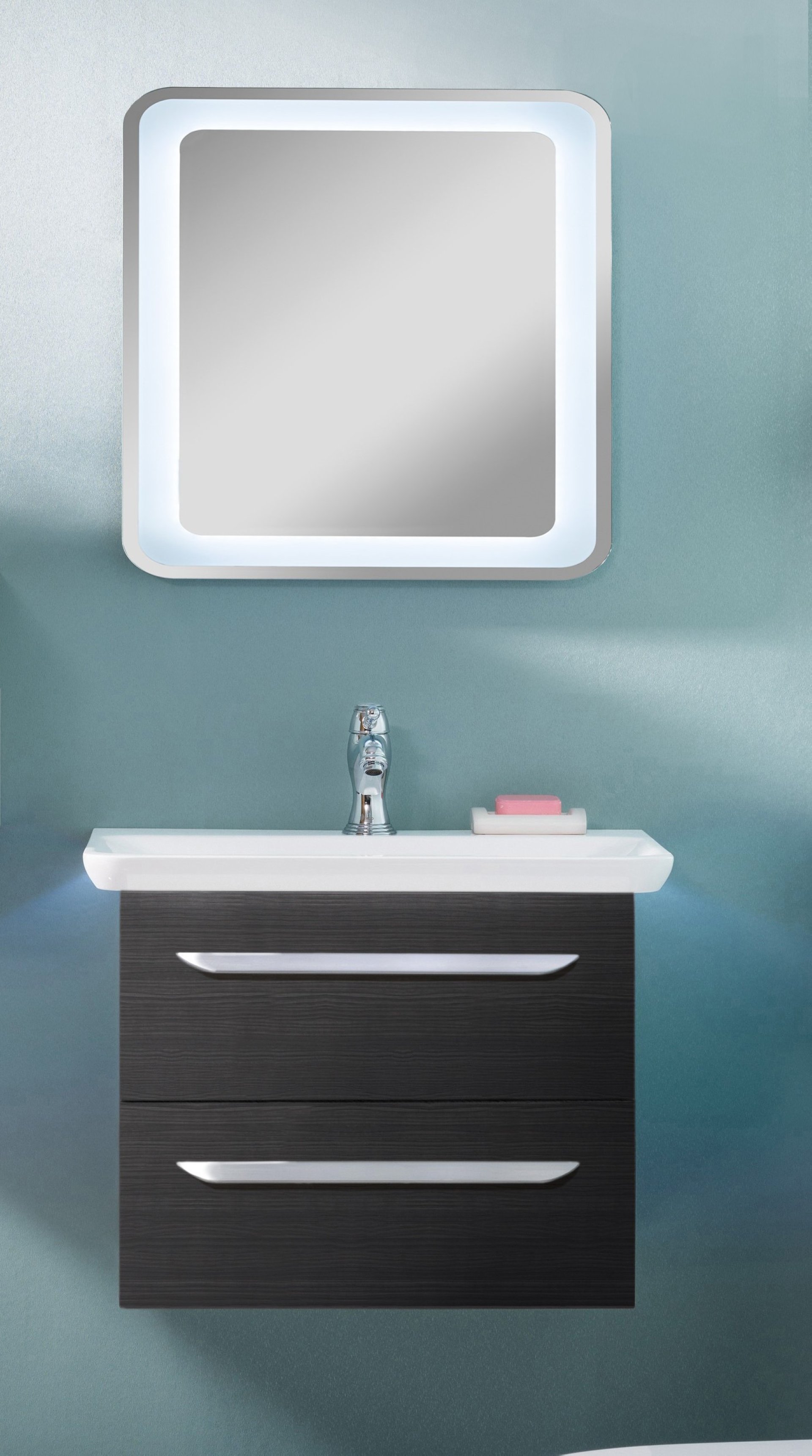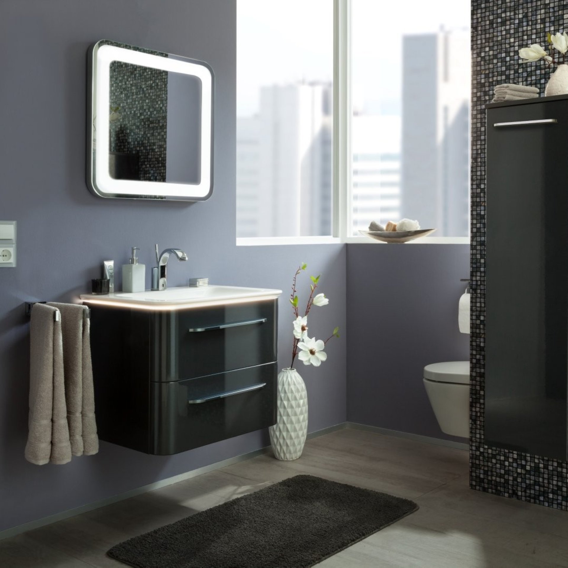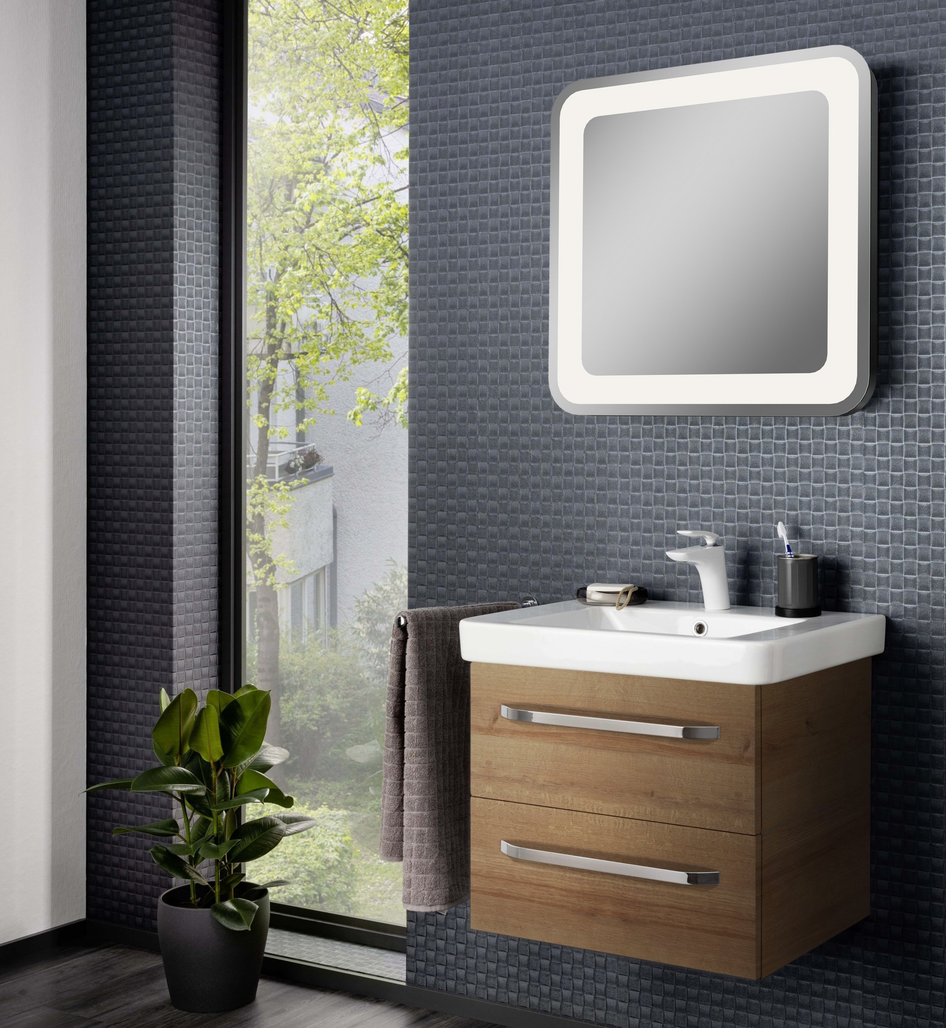 - Ausstattung: indirekte LED-Beleuchtung, 3 Helligkeitsstufen über Sensortaste einstellbar, stufenlose Lichttemperatureinstellung von 2700-6500 Kelvin