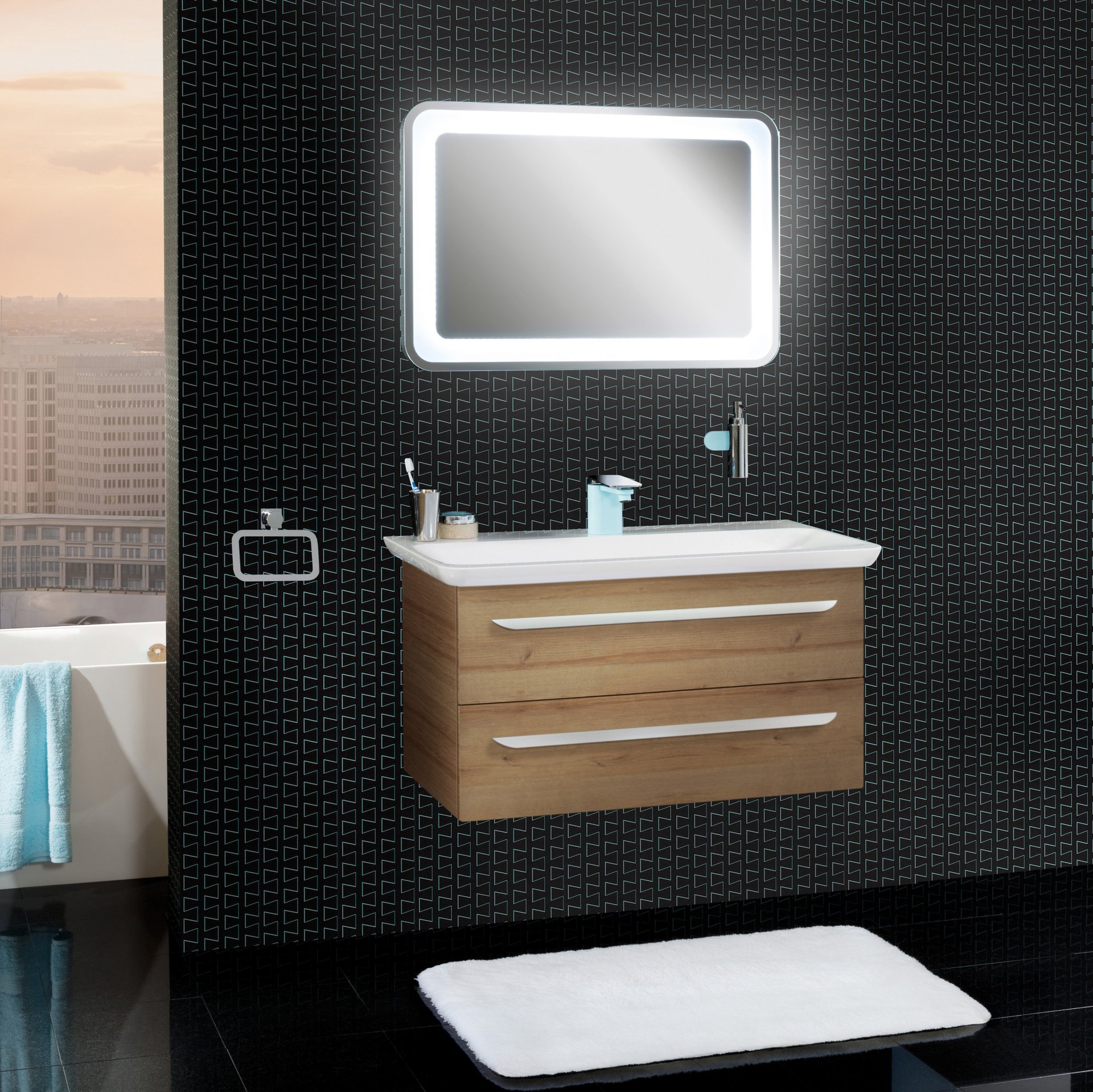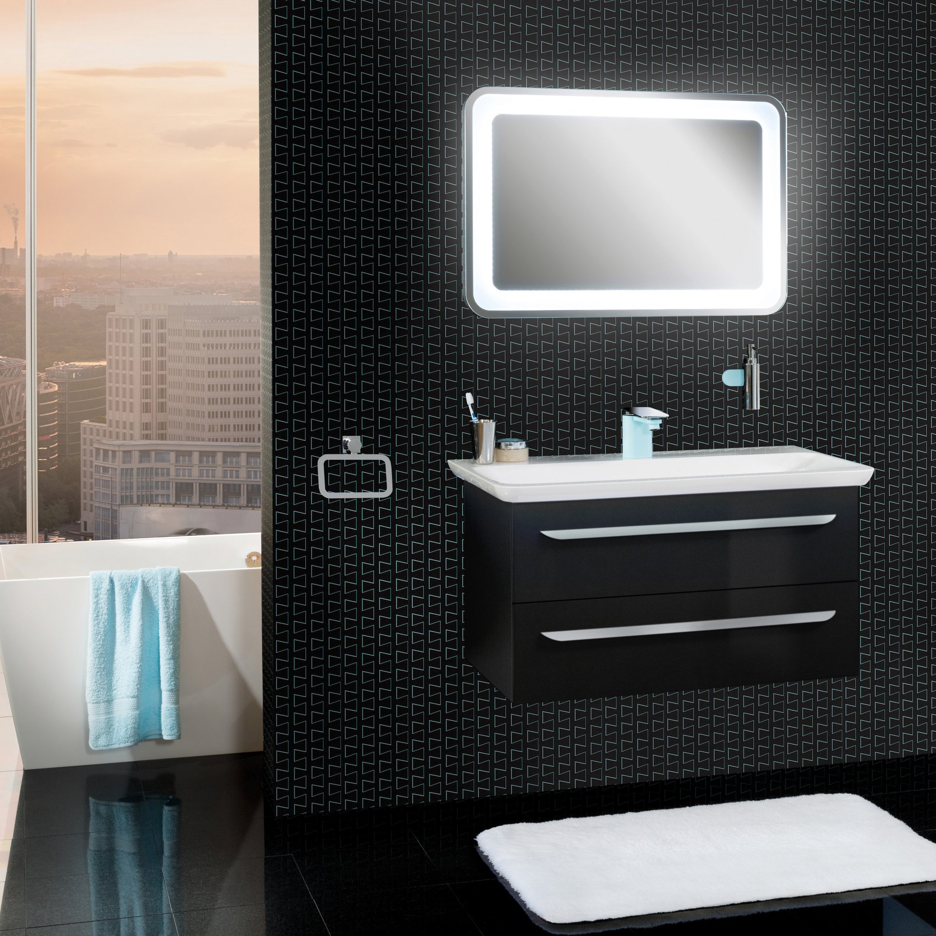 - Ausstattung: indirekte LED-Beleuchtung, 3 Helligkeitsstufen über Sensortaste einstellbar, stufenlose Lichttemperatureinstellung von 2700-6500 Kelvin