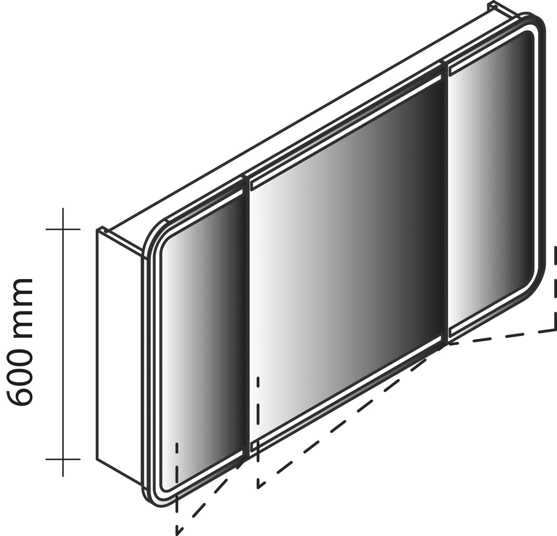 - Beleuchtung: 3 Spiegeltüren mit LED-Beleuchtung, 30/60/30 cm breit (4250 Kelvin)