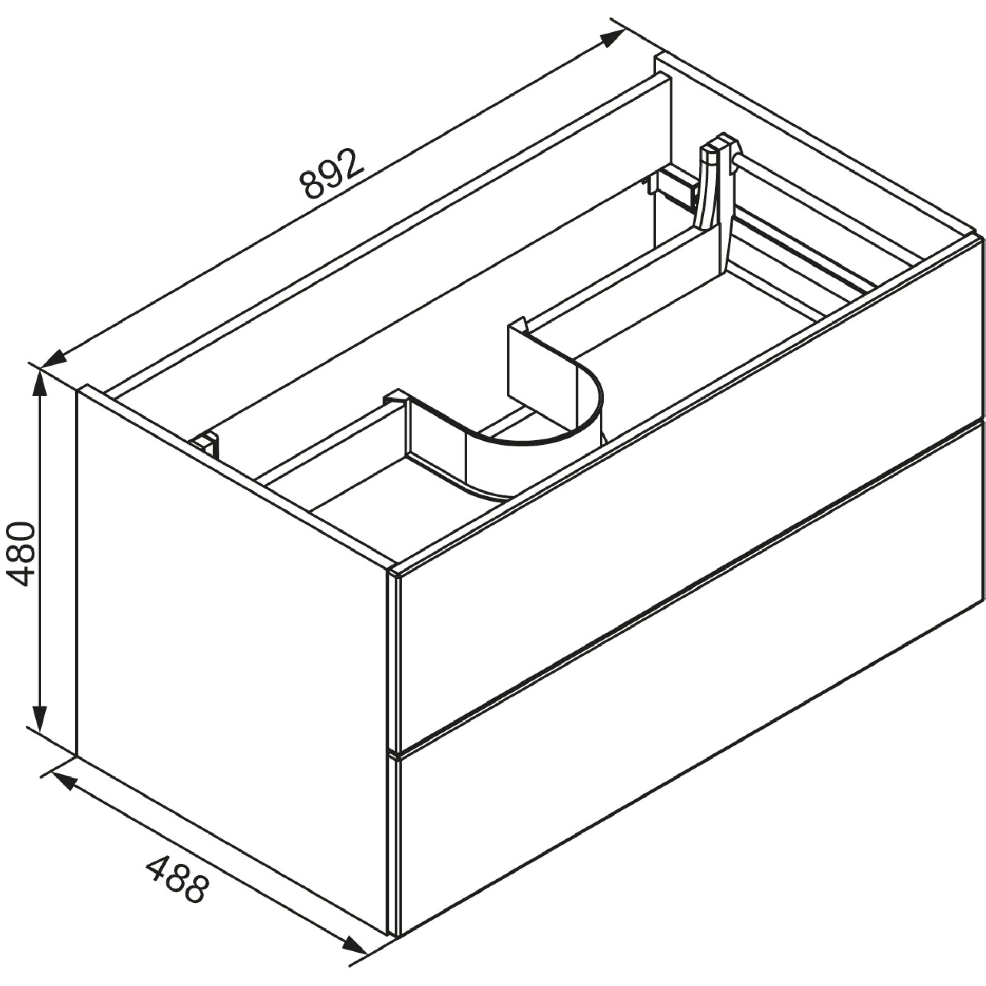 - Ausstattung: 2 Auszüge mit Einzugsdämpfung, 2 Griffe Aluminium eloxiert