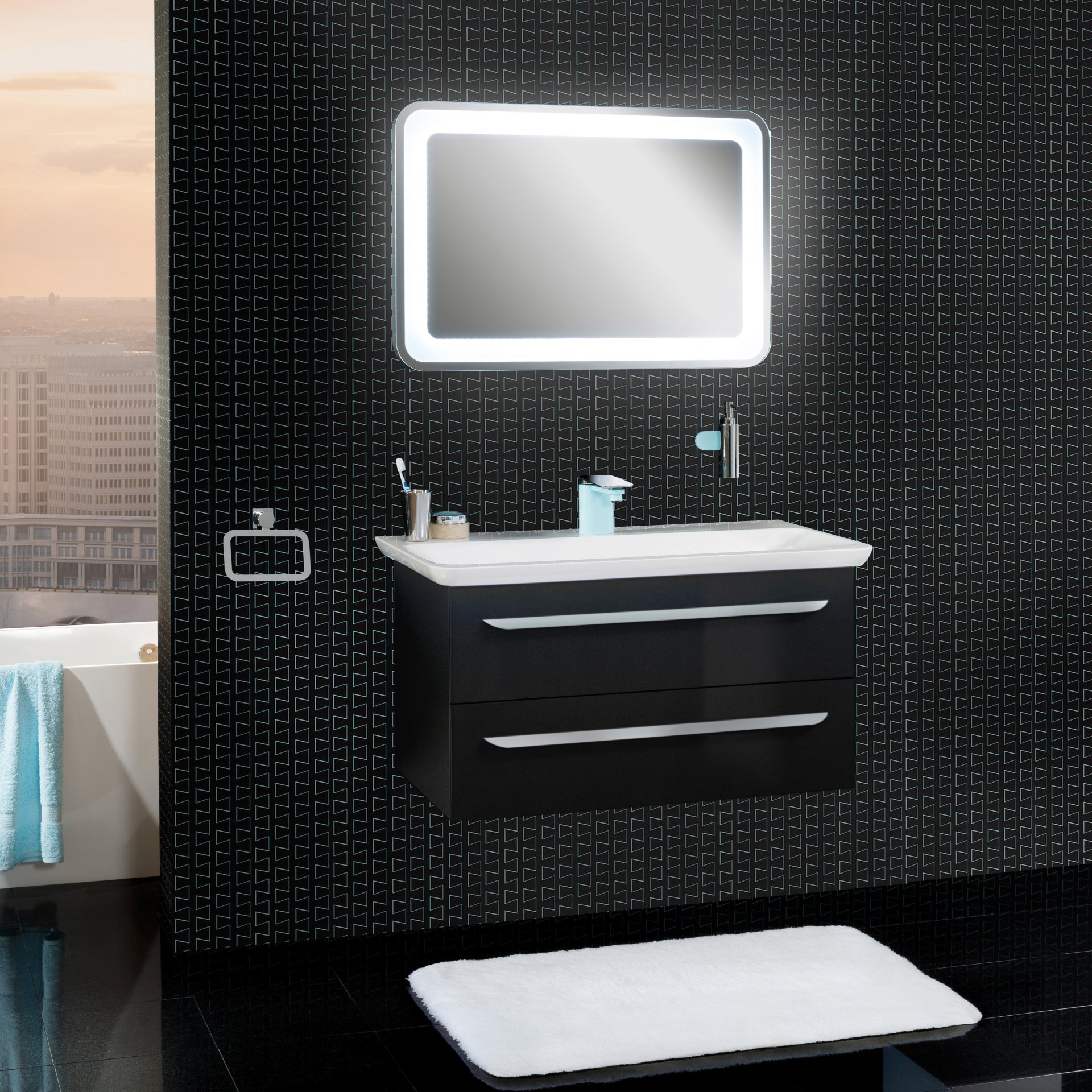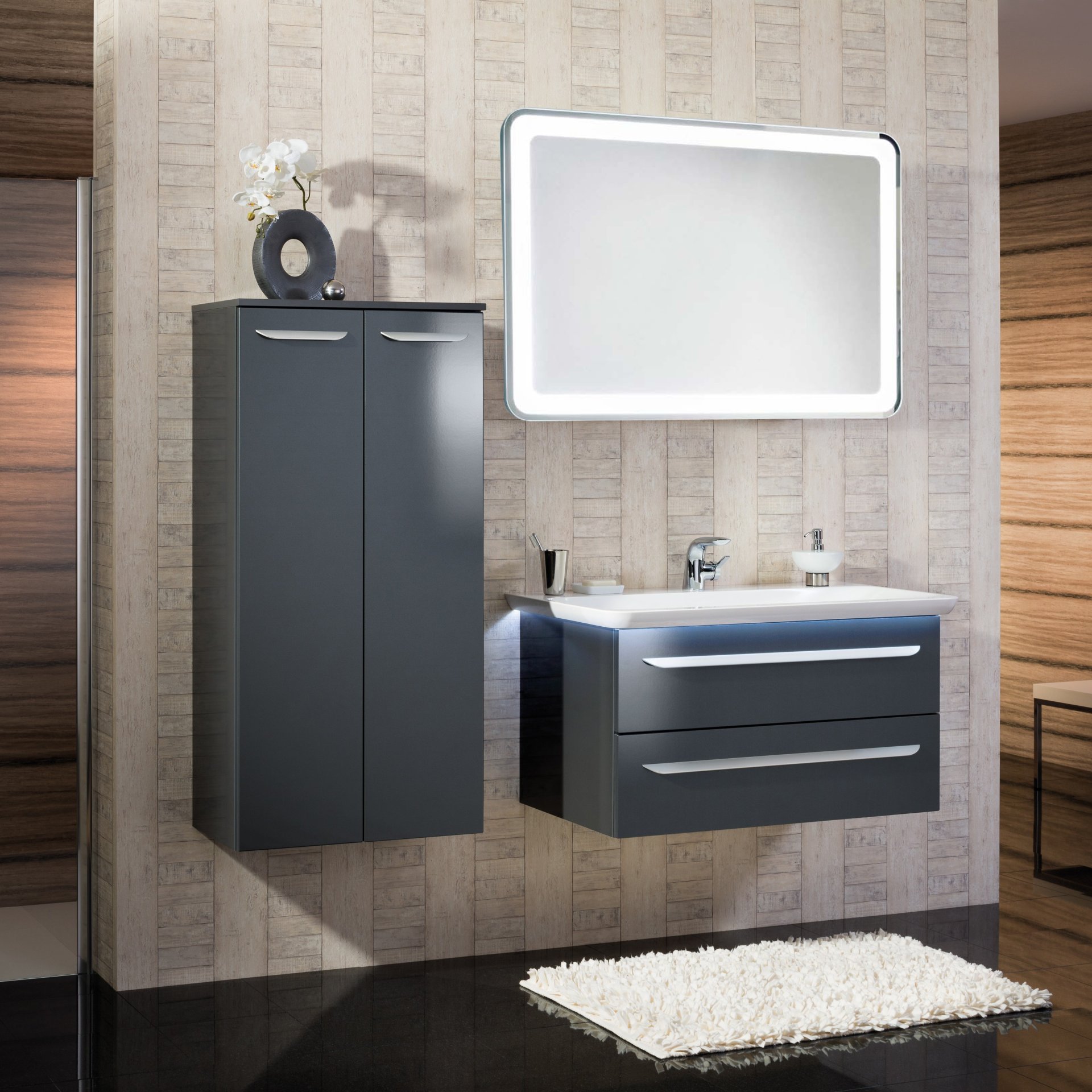 Lanzet M9 Waschbecken mit Unterschrank 100 cm, Anthrazit, Waschbeckenbeleuchtung